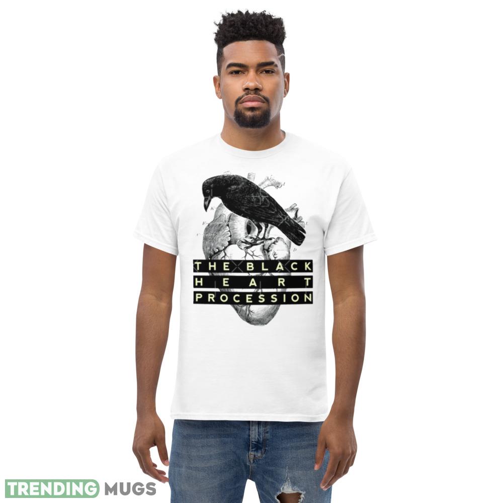 The Black Heart Procession Crow The Cult shirt is the perfect addition to your wardrobe if you’re a fan of unique and edgy fashion. This t-shirt features a striking design of a crow perched atop a skull, surrounded by intricate filigree and the band’s name in bold letters. The black color of the shirt adds to the overall moodiness and mystery of the design. Made with high-quality materials, this shirt is comfortable to wear and can withstand multiple washes without losing its shape or color. Whether you’re attending a concert or simply want to make a statement with your outfit, the Black Heart Procession Crow The Cult shirt is a must-have for any alternative fashion enthusiast.