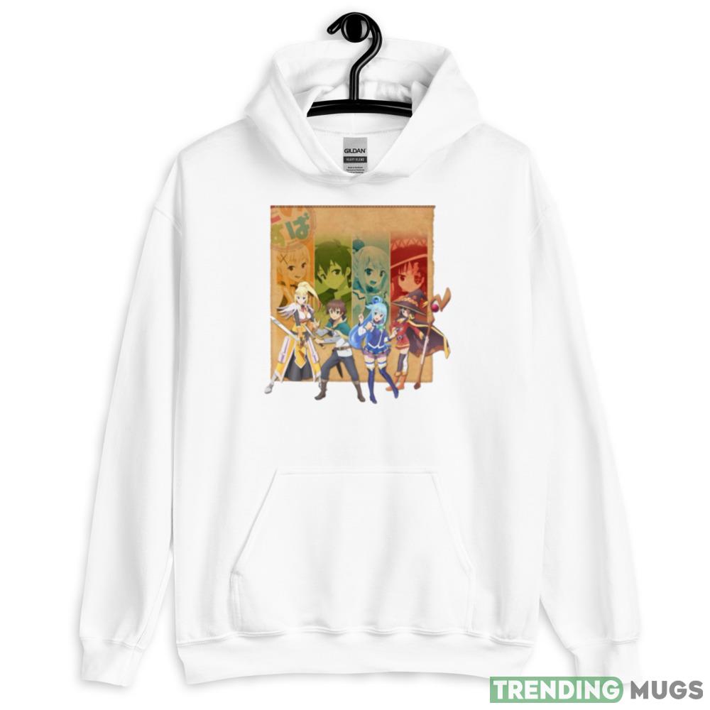 Attention all anime fans! Are you a big fan of the hilarious and eccentric characters from Konosuba? Look no further than The Four Main Characters Of Konosuba Anime shirt! This shirt features the four main characters Kazuma, Aqua, Megumin, and Darkness in all their quirky and lovable glory.