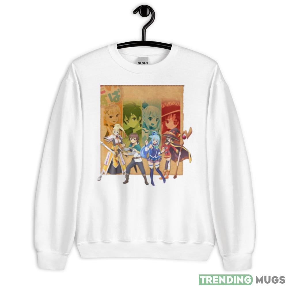 Don’t miss out on The Four Main Characters Of Konosuba Anime shirt! Order now and join the ranks of fellow Konosuba enthusiasts.