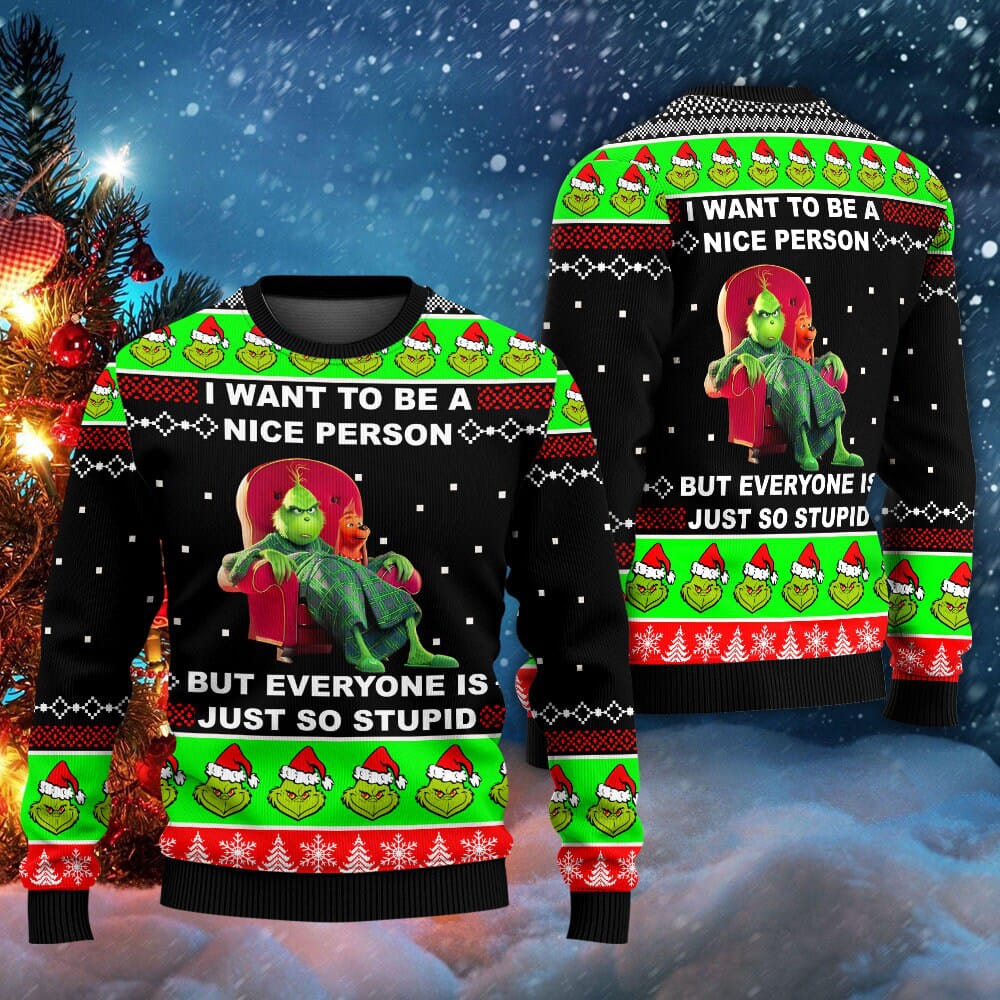 The Grinch I Want To Be A Nice Person But Everyone Is Just So Stupid Ugly Sweater Gift Shirt on Halloween Christmas Anniversary 3D Sweater