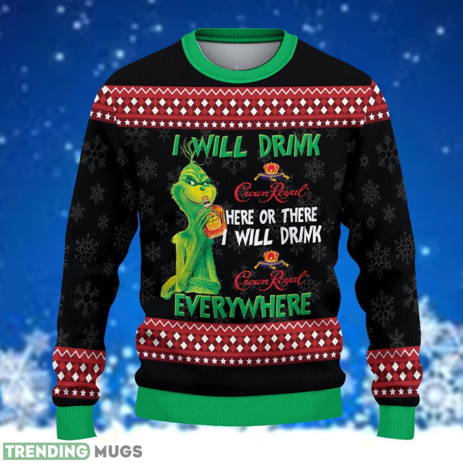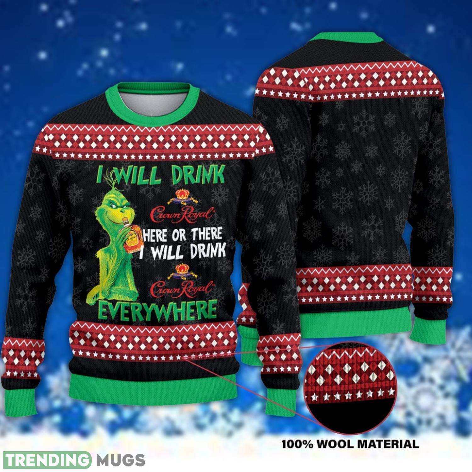 The Grinch I Will Drink CrownRoyal Here Or There I Will Drink CrownRoyal Everywhere Christmas Ugly Sweater Informations: