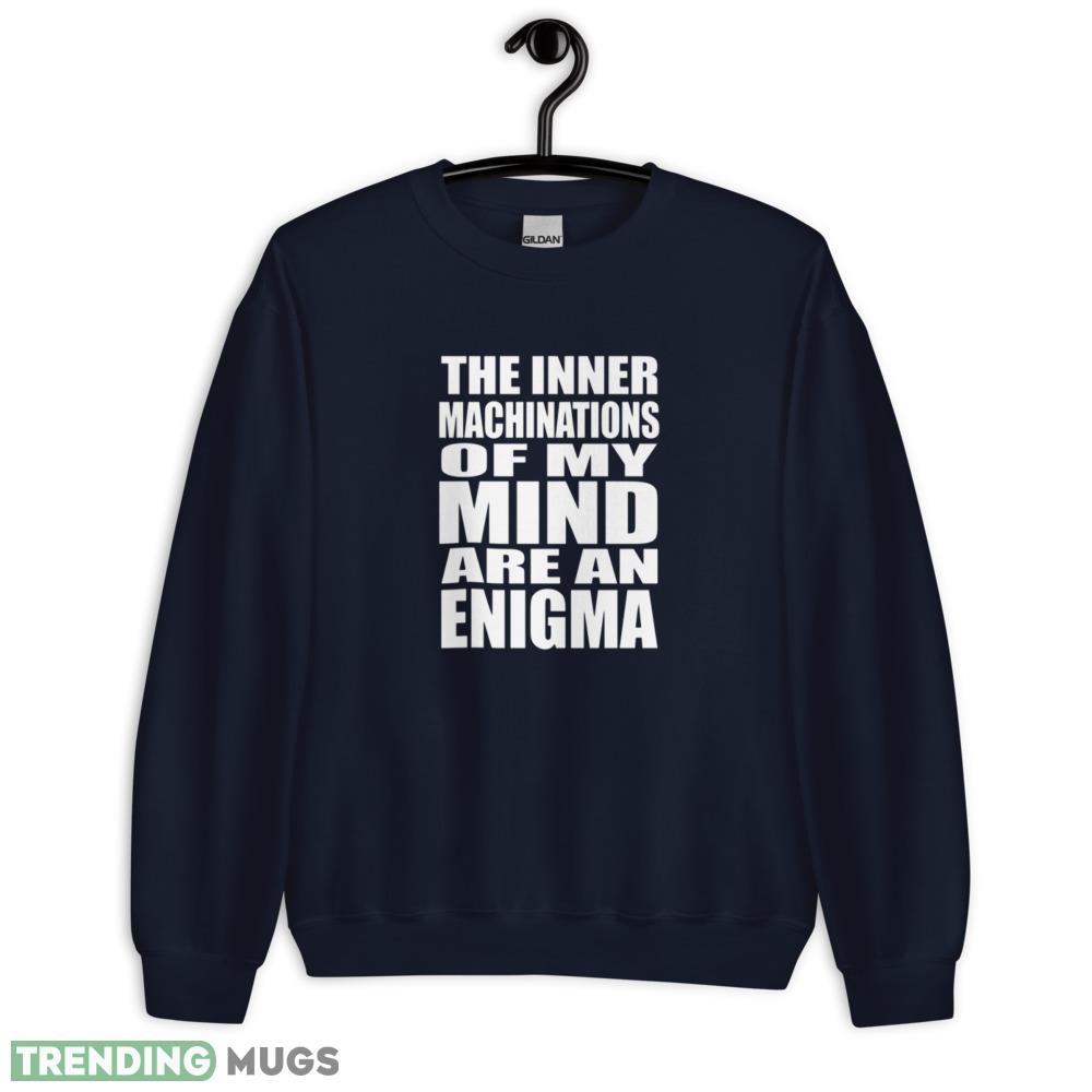 Looking for a T-shirt that perfectly encapsulates the enigmatic nature of your inner thoughts? Look no further than The Inner Machinations of my Mind are an Enigma T Shirt. This eye-catching tee features a bold, graphic print that’s sure to turn heads wherever you go.