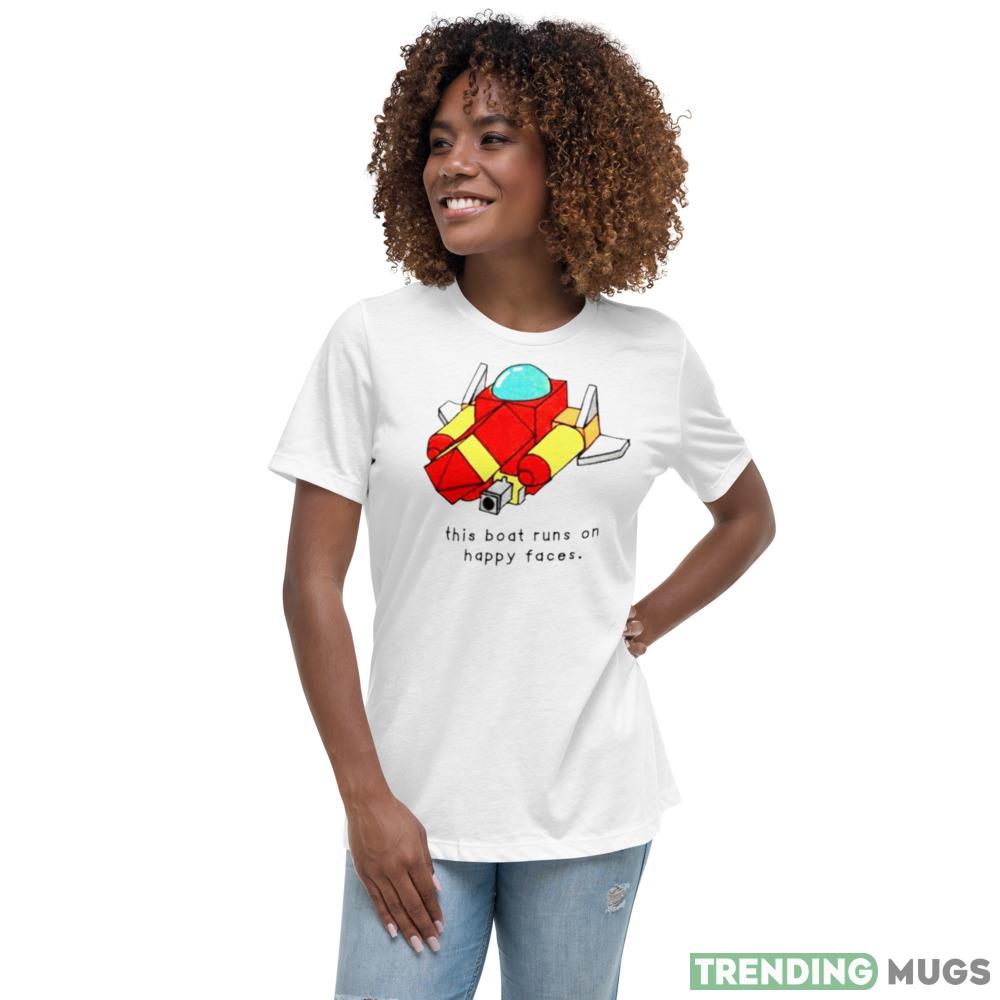 Looking for a hilarious and eye-catching t-shirt that will bring a grin to everyone’s face? Look no further than our “This boat runs on happy faces” Funny T-Shirt! This unique and quirky shirt is sure to turn heads with its bold and colorful design, featuring a cartoon boat powered by nothing but the smiles and laughter of those around it.