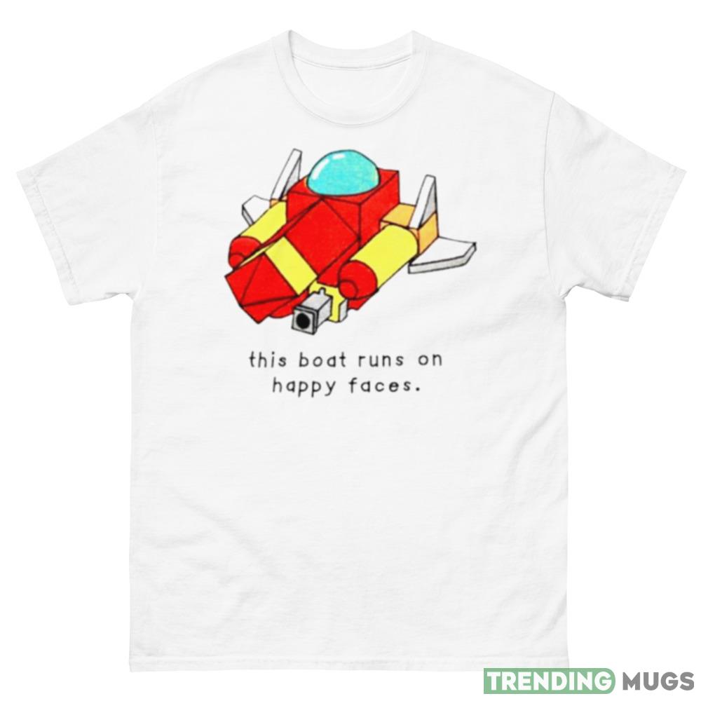 The “This boat runs on happy faces” Funny T-Shirt is available in a range of sizes to fit men, women, and children, making it the perfect gift for anyone who loves a good laugh. Whether you’re headed to the beach, the park, or just hanging out with friends, this shirt is sure to make you the life of the party.