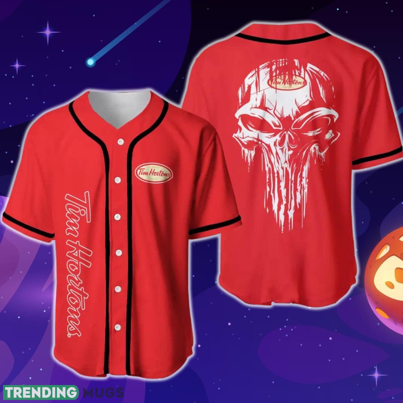 Elevate your street style with the bold and edgy Tim Hortons Skull Baseball Jersey. Made from high-quality materials, this jersey features a striking skull design on the front, making it a standout piece in your wardrobe. Perfect for casual days out or lounging at home, this jersey offers both comfort and style. Stand out from the crowd with the Tim Hortons Skull Baseball Jersey – a must-have for any fashion-forward individual.