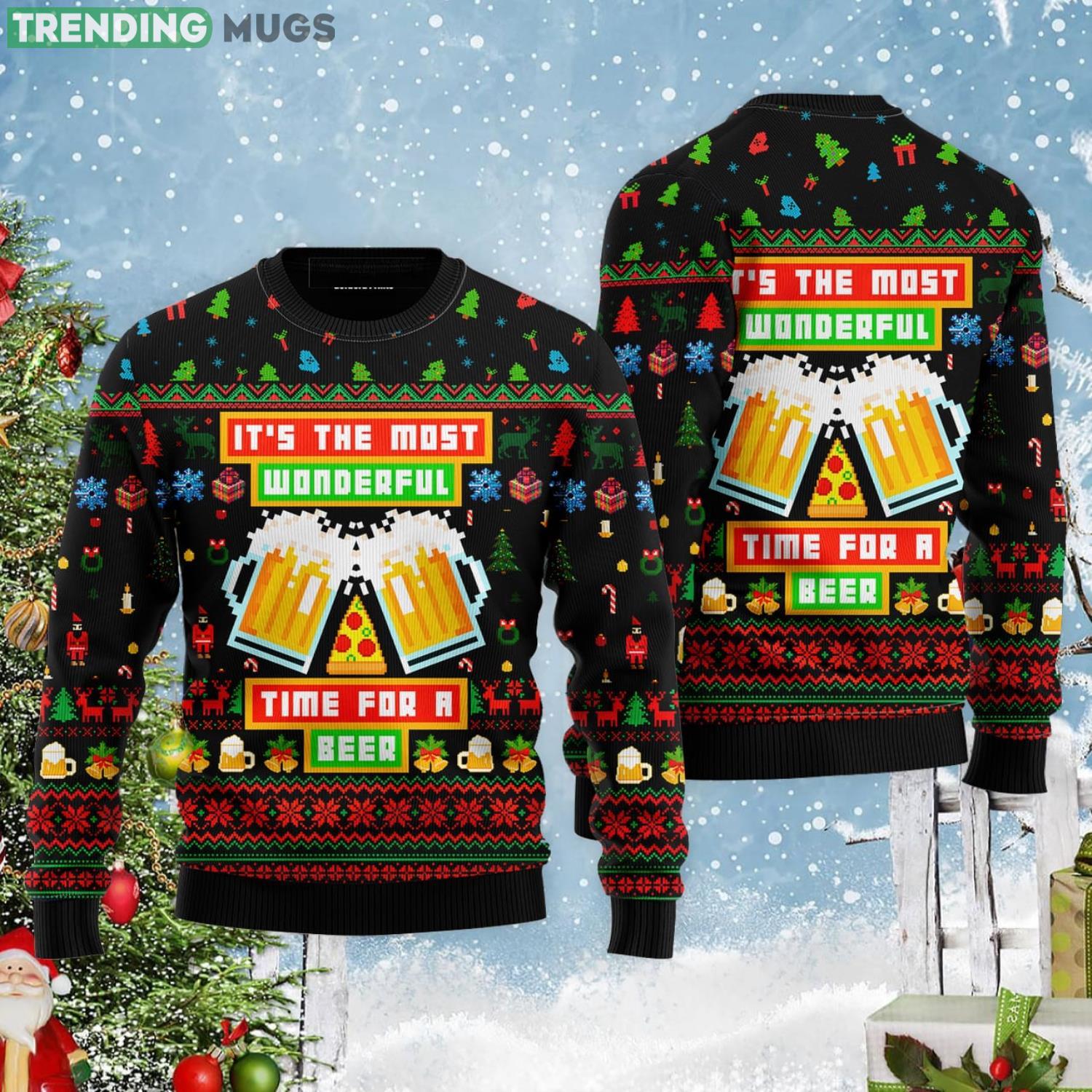 It’s time for a beer! This funny Christmas gift ugly Christmas sweater is the perfect way to show your holiday spirit. This sweater is made of a soft, comfortable fabric and features a crew neck and long sleeves. The front of the sweater is printed with the words “Time for a beer” in a festive font. The back of the sweater is plain. This sweater is sure to be a hit at your next holiday party!