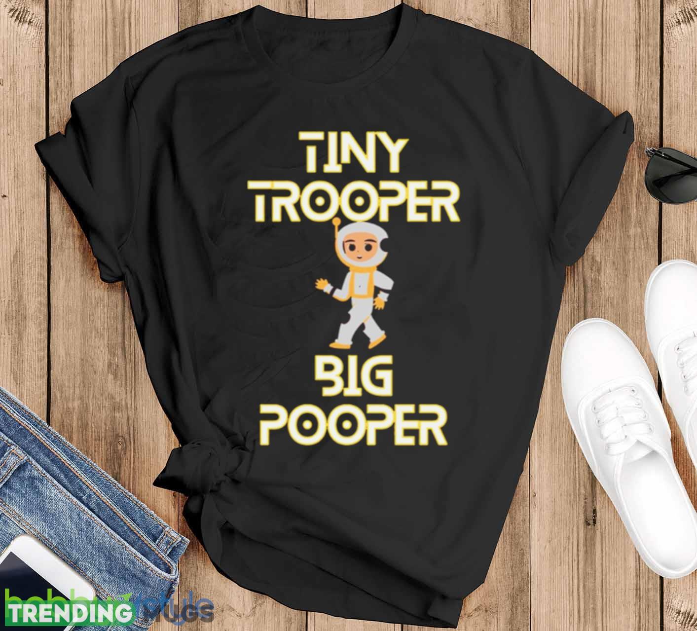 Get ready to make a statement with our exclusive Tiny Trooper Big Pooper shirt! Designed for all the proud parents out there, this quirky and adorable shirt is bound to turn heads and put a smile on everyone’s face. Crafted with the utmost care, this shirt is made from premium quality material that guarantees ultimate comfort and durability. The eye-catching design features a charming illustration of a pint-sized trooper and a playful twist on words. Whether you’re looking for a gift for a fellow parent or simply want to express your love for your little one in a fun and lighthearted way, the Tiny Trooper Big Pooper shirt is the perfect choice. Embrace your parental pride and grab yours today!