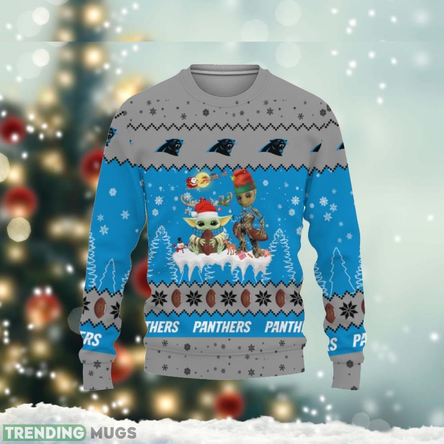 Tis The Season Christmas 2022 Baby Yoda Groot Cute Sweater Carolina Panthers3D Ugly Christmas Sweater Product Photo 1