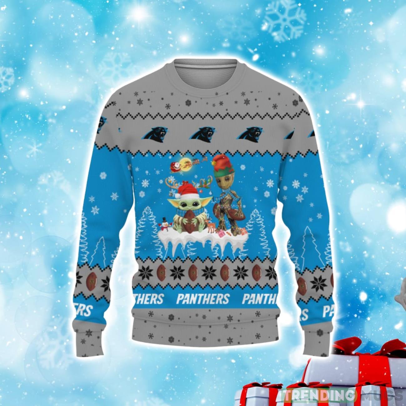 Tis The Season Christmas 2023 Baby Yoda Groot Cute Unisex Gift Football American Carolina Panthers 3D Sweater