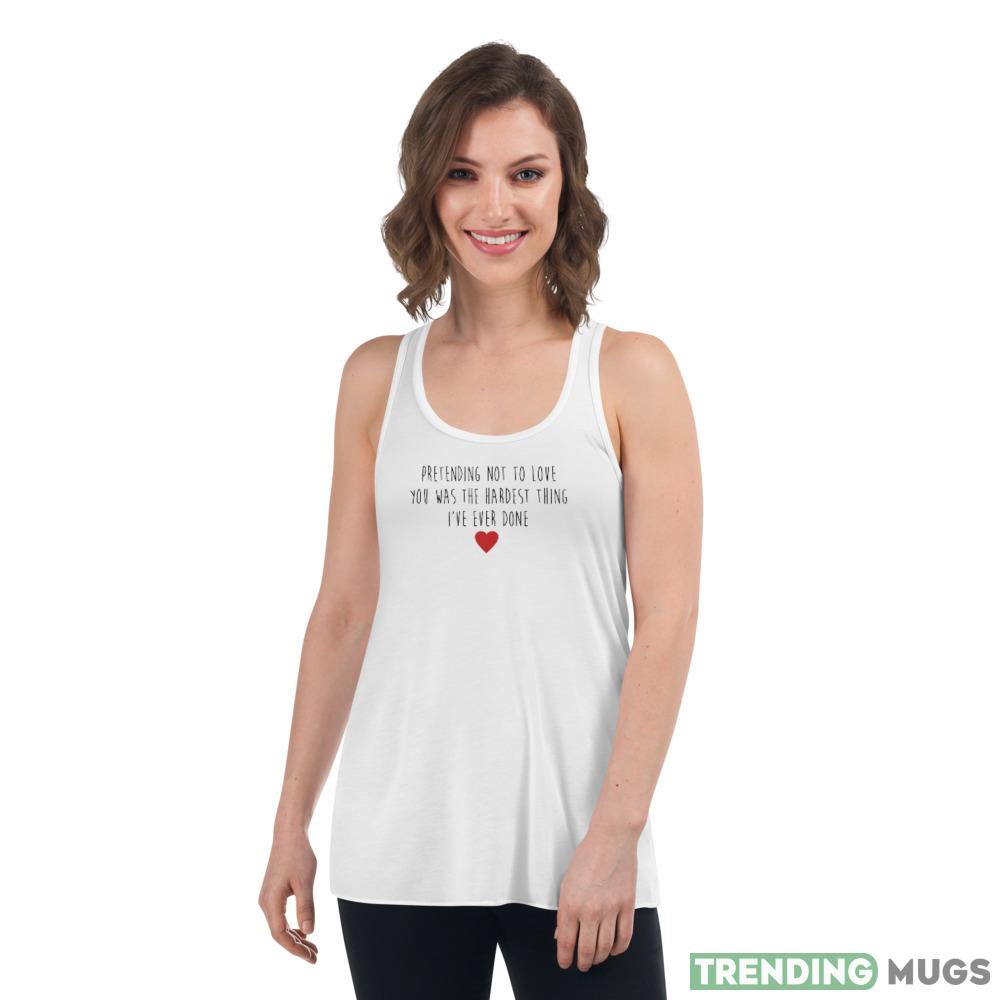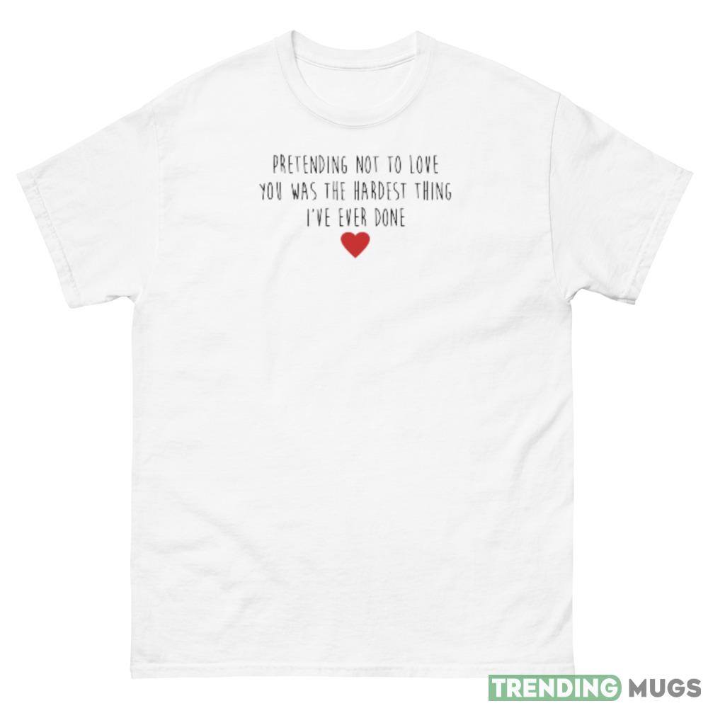 Featuring a bold and eye-catching design, this t-shirt is perfect for fans of the hit TV show Pretty Little Liars. The front of the shirt features the iconic quote from Toby, “Pretending not to love you was the hardest thing,” in bold white letters against a black background. The design is simple yet impactful, making it the perfect choice for casual wear or a night out on the town.