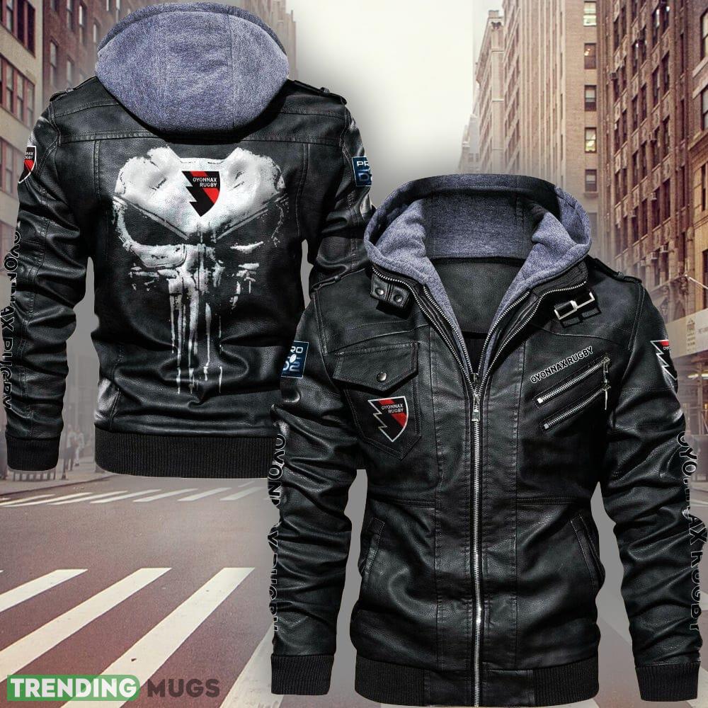 Top 14 Us Oyonnax Rugby Big Logo Brown And Black Leather Jacket Men Women