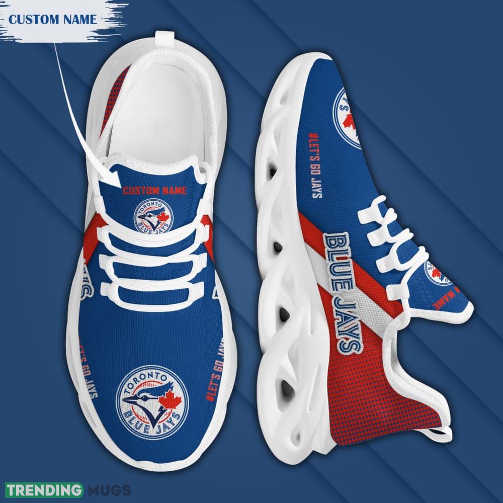 Toronto Blue Jays Logo Custom Name Pattern 3D Max Soul Sneaker Shoes In Blue And Red information: