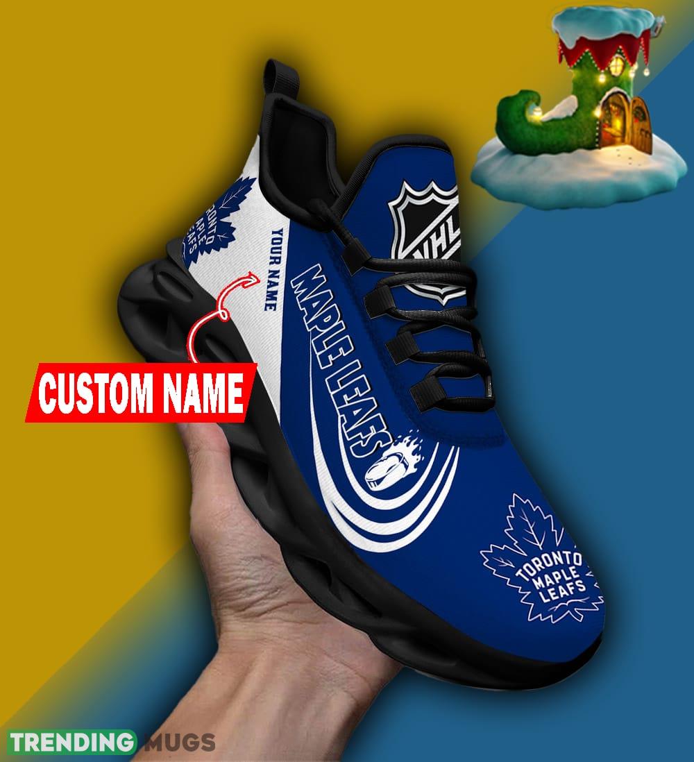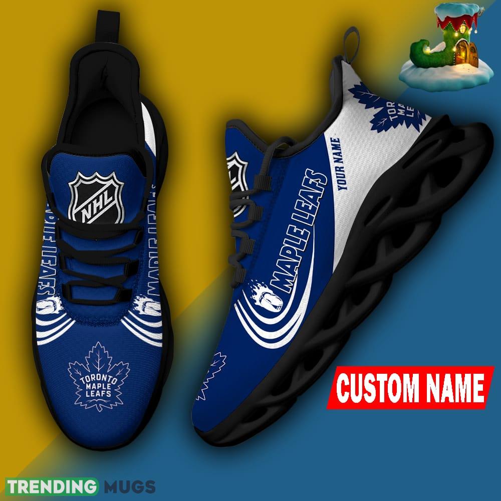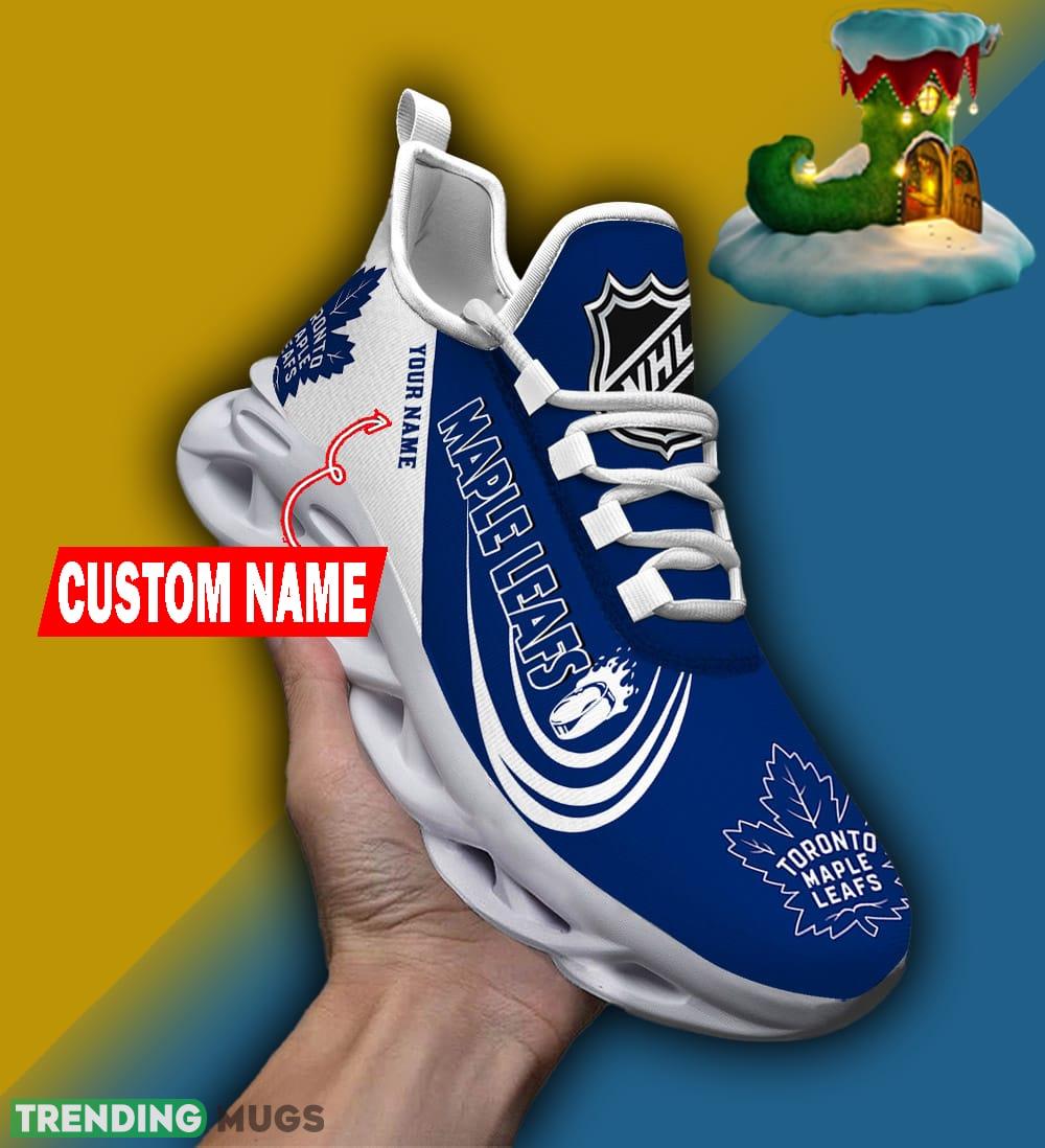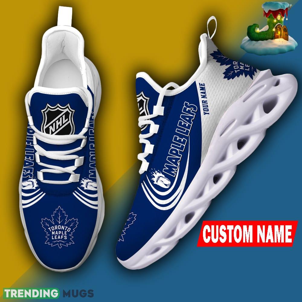But what sets these sneakers apart is the personalization option. You can now customize your very own pair with your name, adding a unique touch that truly makes them one-of-a-kind. Imagine stepping out in style, proudly sporting your personalized Toronto Maple Leafs sneakers!