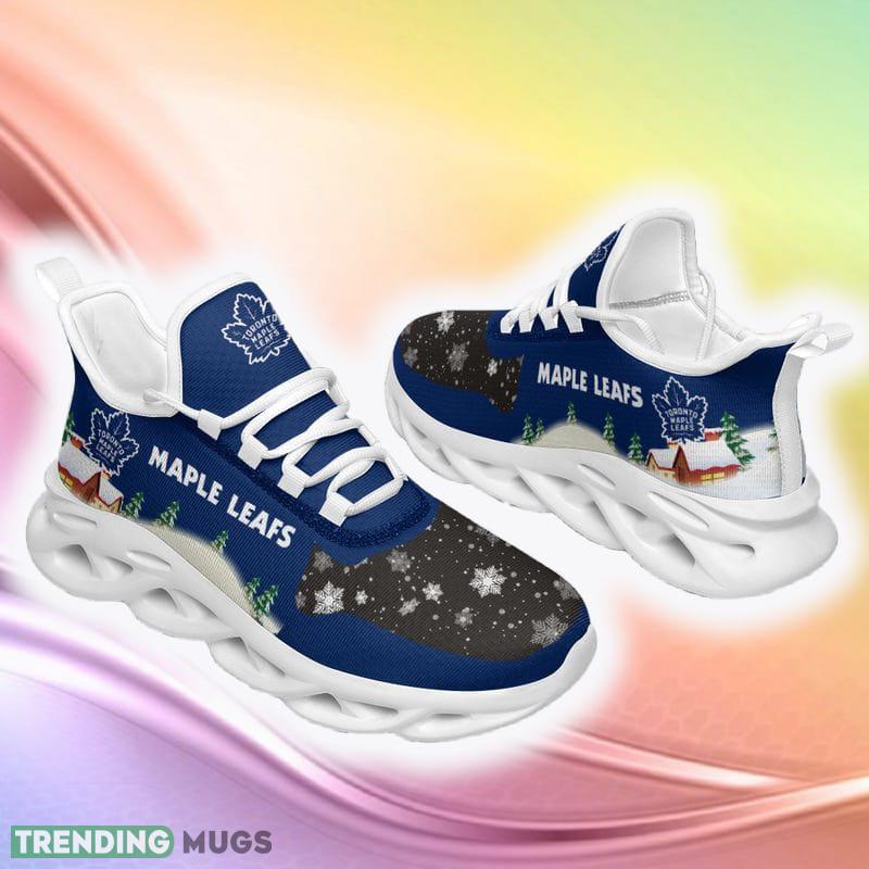 Toronto Maple Leafs Print Ugly Christmas Snow Flowers Blue Color Sneakers Max Soul Shoes For Fans Gift information: