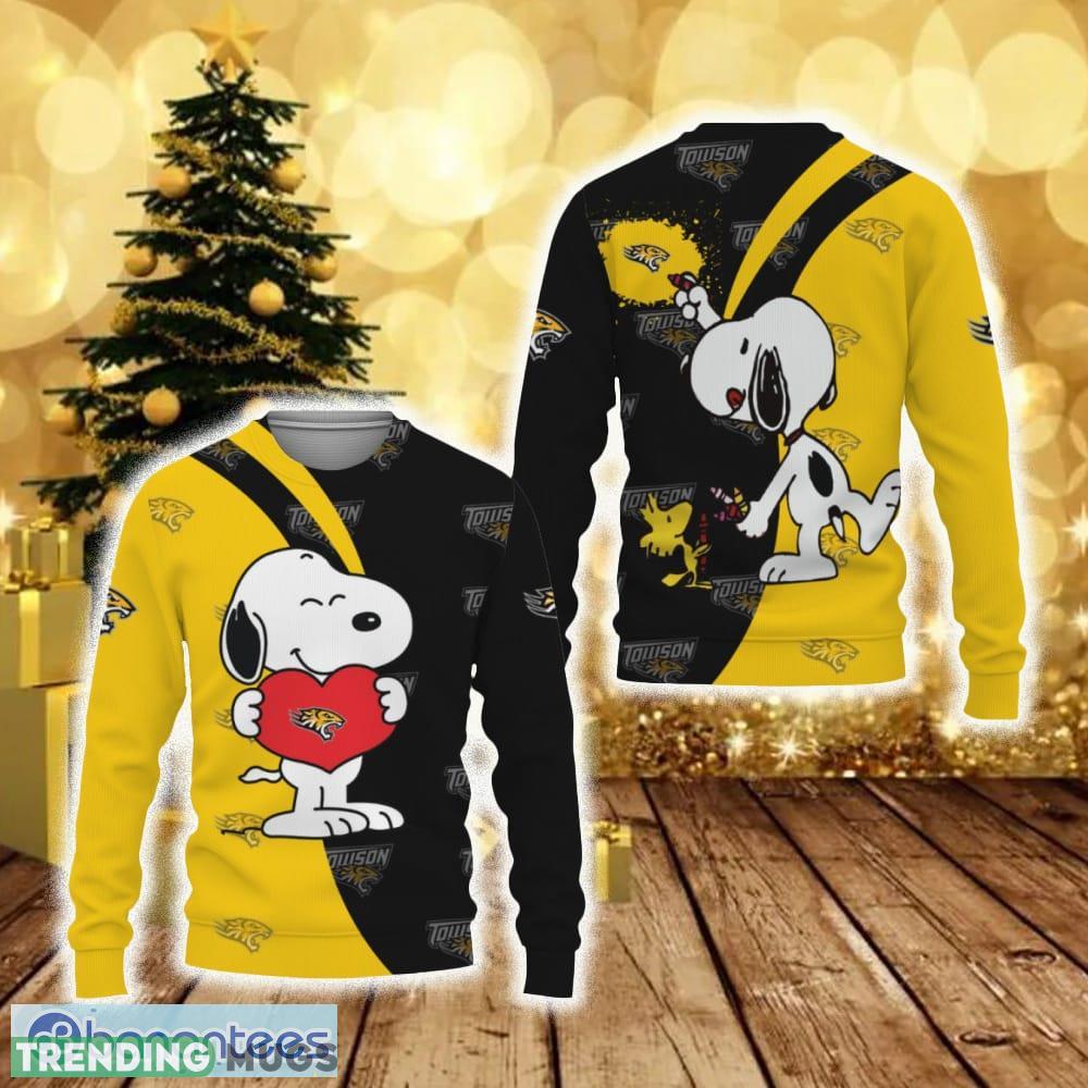 Towson Tigers Snoopy Cute Heart American Sports Team Funny 3D Sweater For Men And Women Gift Christmas