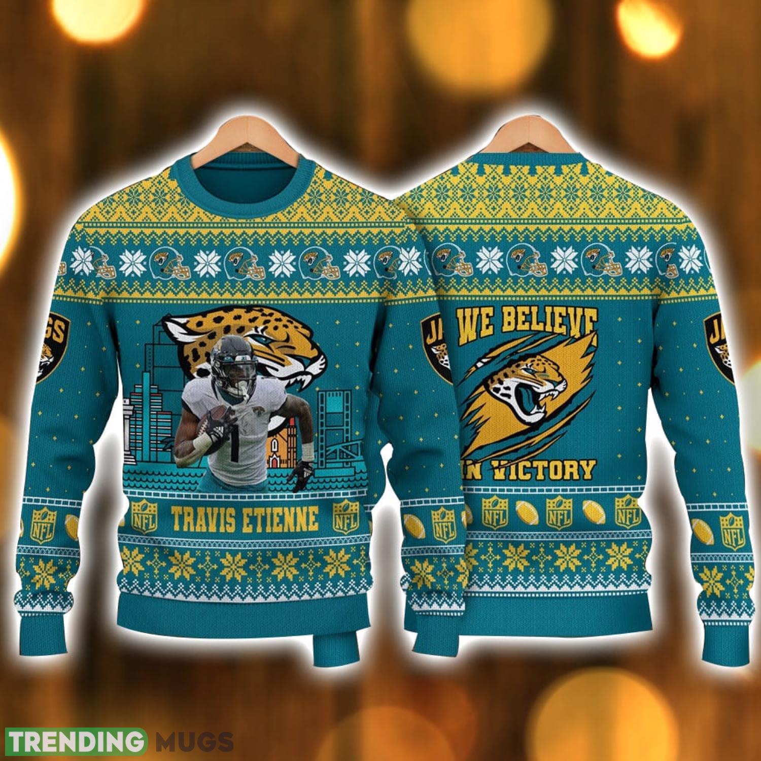 Travis Etienne Jacksonville Jaguars We Believe In Victory NFL Ugly Christmas Sweater Christmas Gift For Sport Fans Informations: