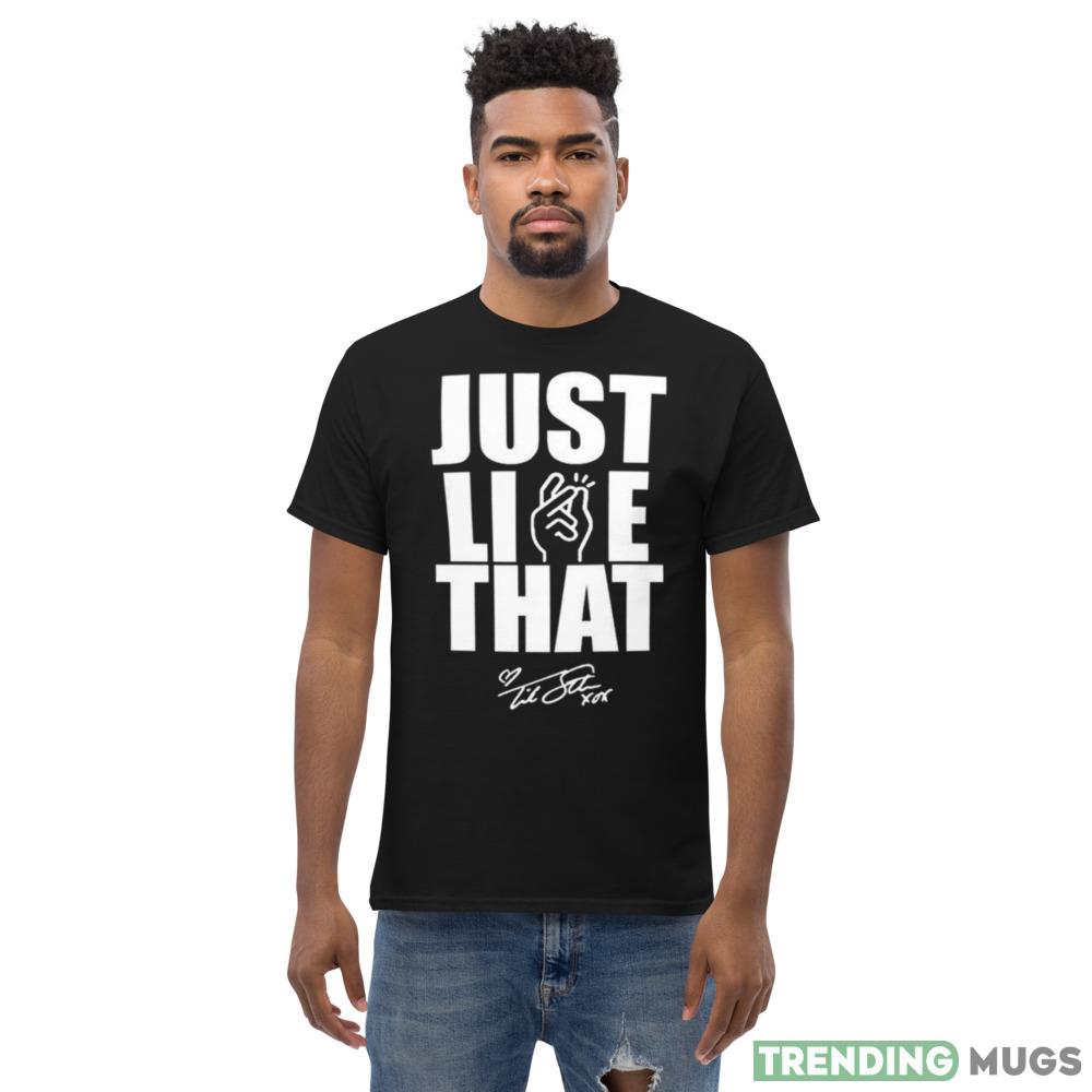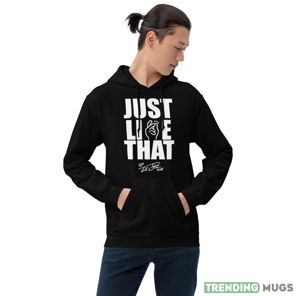 Featuring a sleek black color and a bold “just like that” graphic on the front, this t-shirt is the perfect addition to any wardrobe. Whether you’re heading out for a night on the town or just hanging out with friends, this t-shirt is sure to turn heads and make a statement.