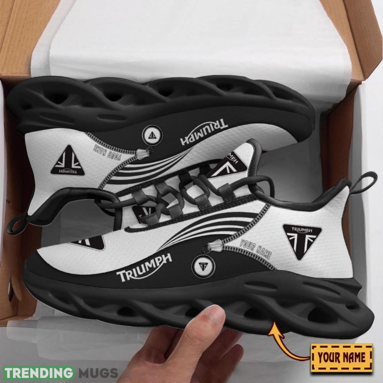 This Triumph Motorcycles Custom Name Max Soul Sneakers Running Lover Gift Men And Women Shoes is a breathable, lightweight, and comfortable casual outdoor shoe that has a unique design. It is made of a mesh fabric which makes it sweat absorbent and breathable, while the rubber bottom ensures traction, comfort, and durability. It is available in two colors: black or white sole. There are two styles of shoelace holes so you can choose your preference.