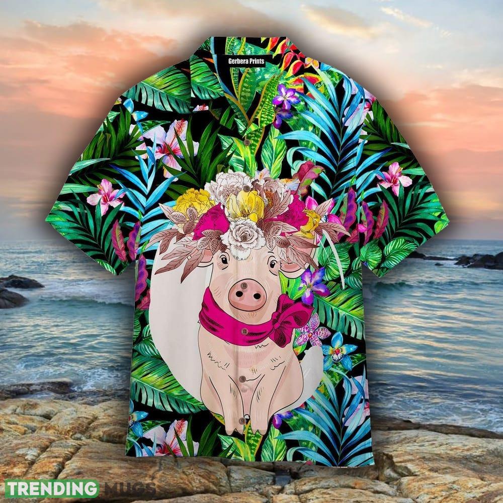 Tropical Flowers Pink Pig 3D Hawaiian Shirt For Men And Women – Tropical Flowers Pink Pig Hawaiian Shirt