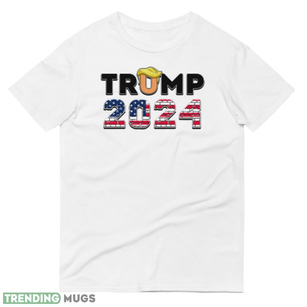Emblazoned with a striking design featuring the iconic Trump 2024 logo, this black version t-shirt exudes confidence and patriotism. Its sleek and timeless design ensures that it will remain a fashion staple for years to come. Whether you’re attending a political rally, hanging out with friends, or simply expressing your political beliefs, this t-shirt is a must-have addition to your collection.