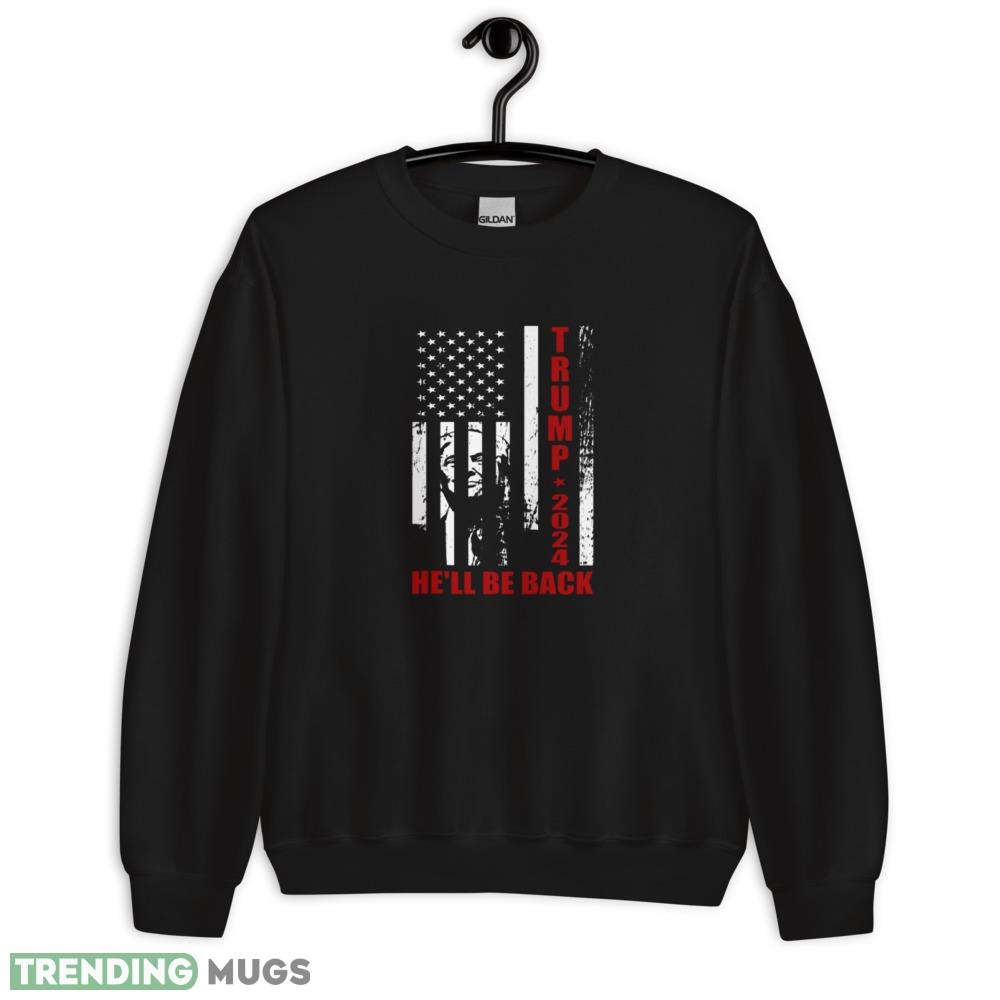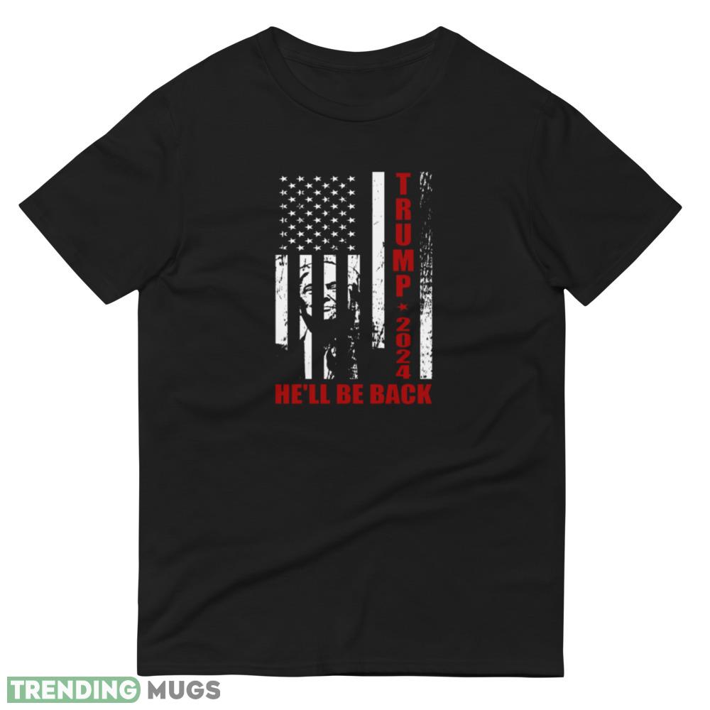 Trump 2024 Hell Be Back Patriotic Flag Black T Shirt Details