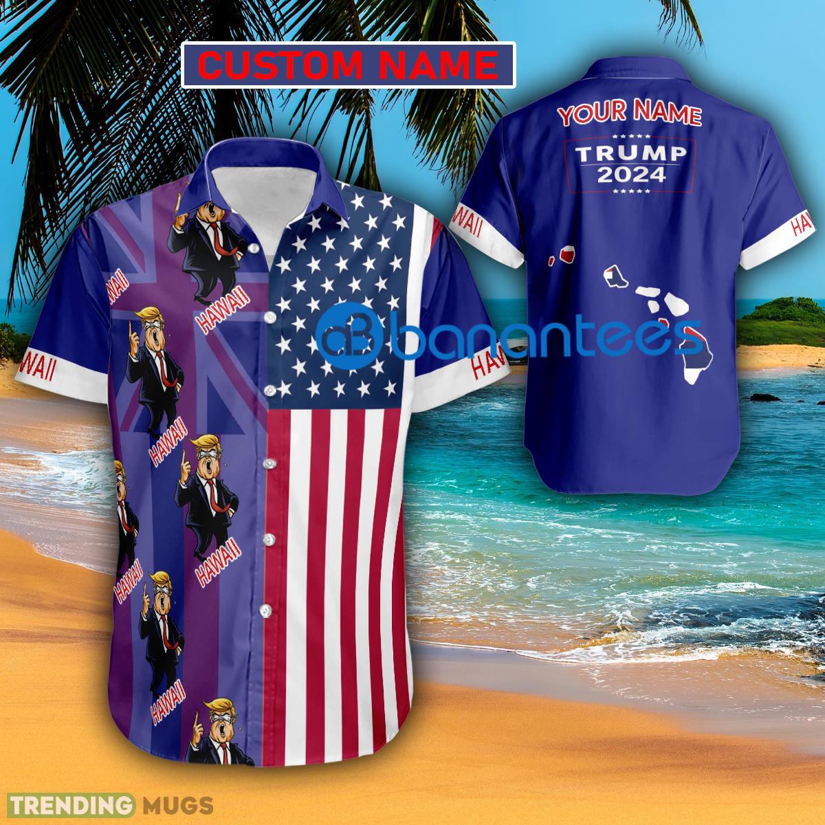 Trump 2024 Pointing Hawaii Usa Flag Hawaiian Shirt Trending Custom Name Gift Details: