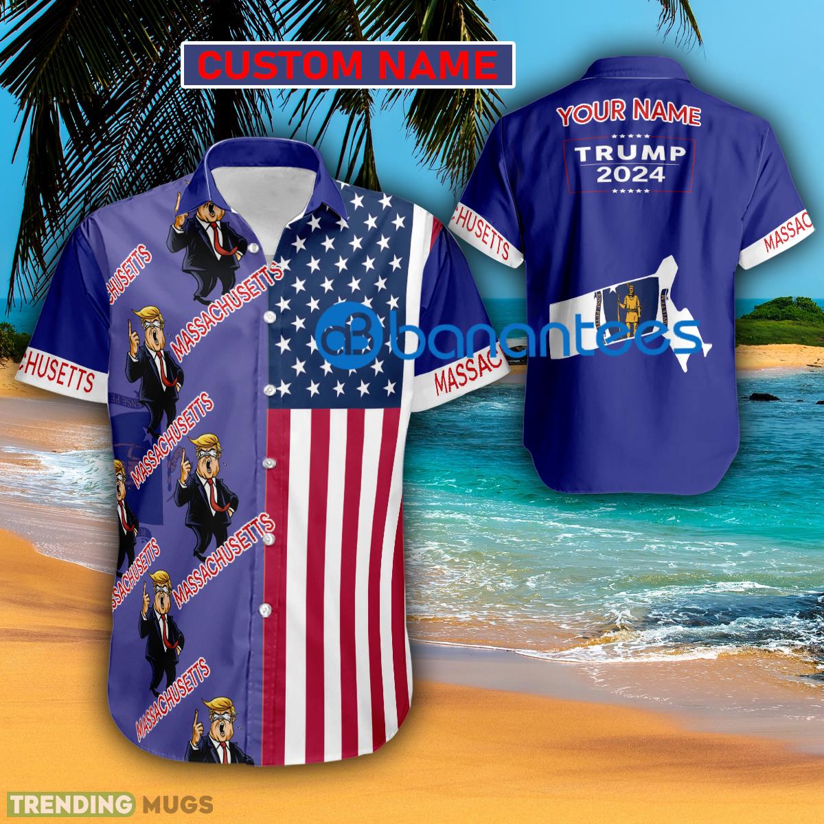 Trump 2024 Pointing Massachusetts Usa Flag Hawaiian Shirt Trending Custom Name Gift Details: