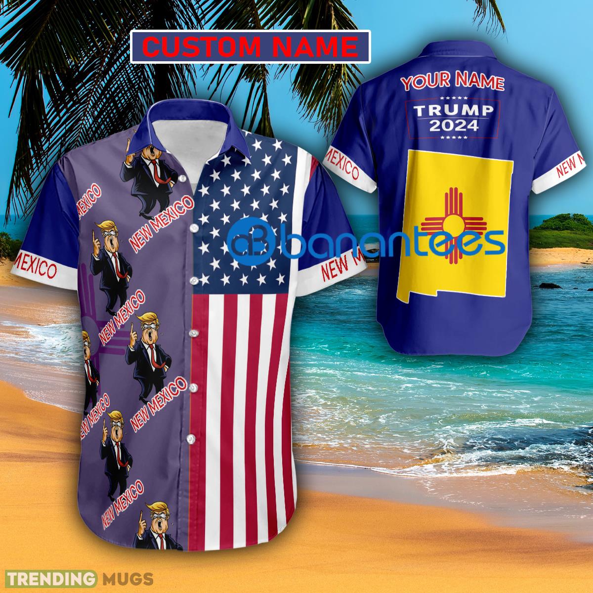 Get ready to show off your patriotic spirit with our Trump 2024 Pointing Mexico USA Flag Hawaiian Shirt! This trendy custom name gift is perfect for anyone who wants to make a bold statement and support their favorite candidate.