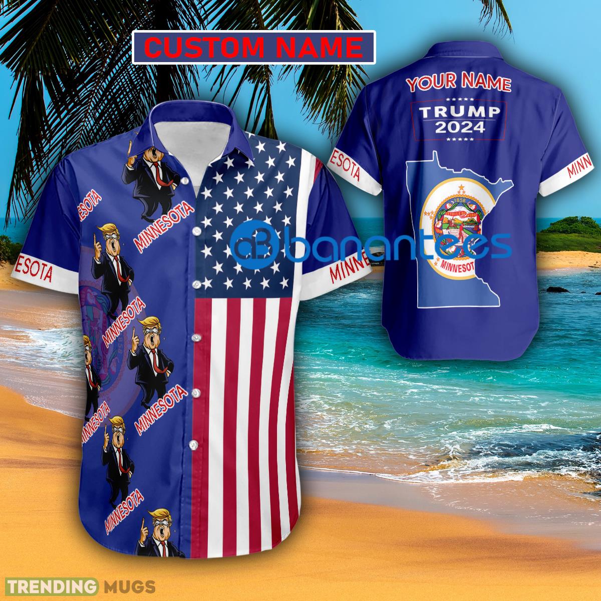 Trump 2024 Pointing Minnesota Usa Flag Hawaiian Shirt Trending Custom Name Gift Details: