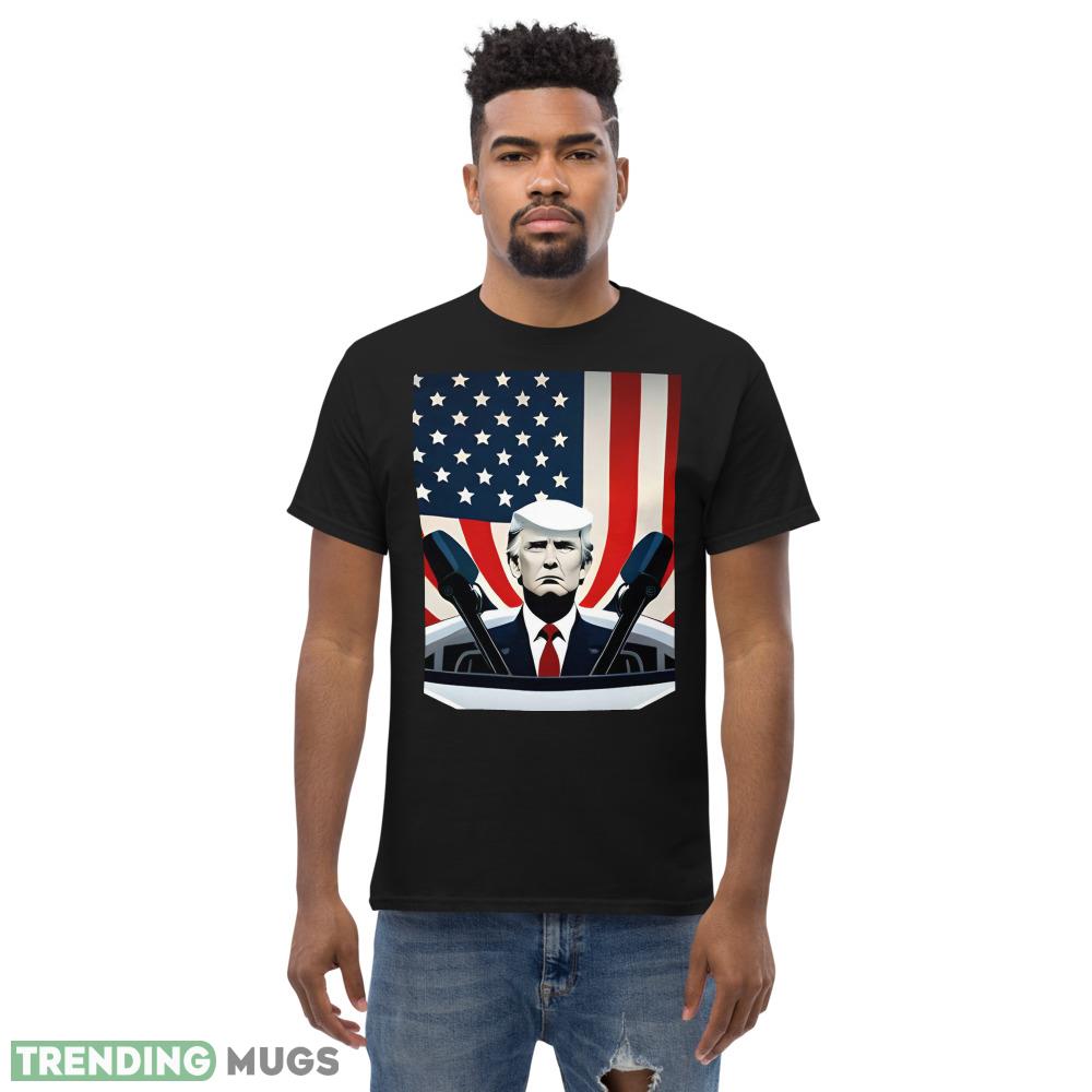 This Trump speech black t-shirt is the perfect gift for both men and women who are passionate about politics and love to make a statement with their fashion choices. Made with high-quality materials, this t-shirt is comfortable to wear and features a bold, black color that complements any outfit. The t-shirt is adorned with a powerful speech from the former President of the United States, Donald Trump, which is sure to grab attention and spark conversations. Whether you’re wearing it to a political rally or a casual day out with friends, this t-shirt is a must-have for anyone looking to show off their patriotism and support for America’s 45th President. Order yours today and make a bold statement with your fashion choices!