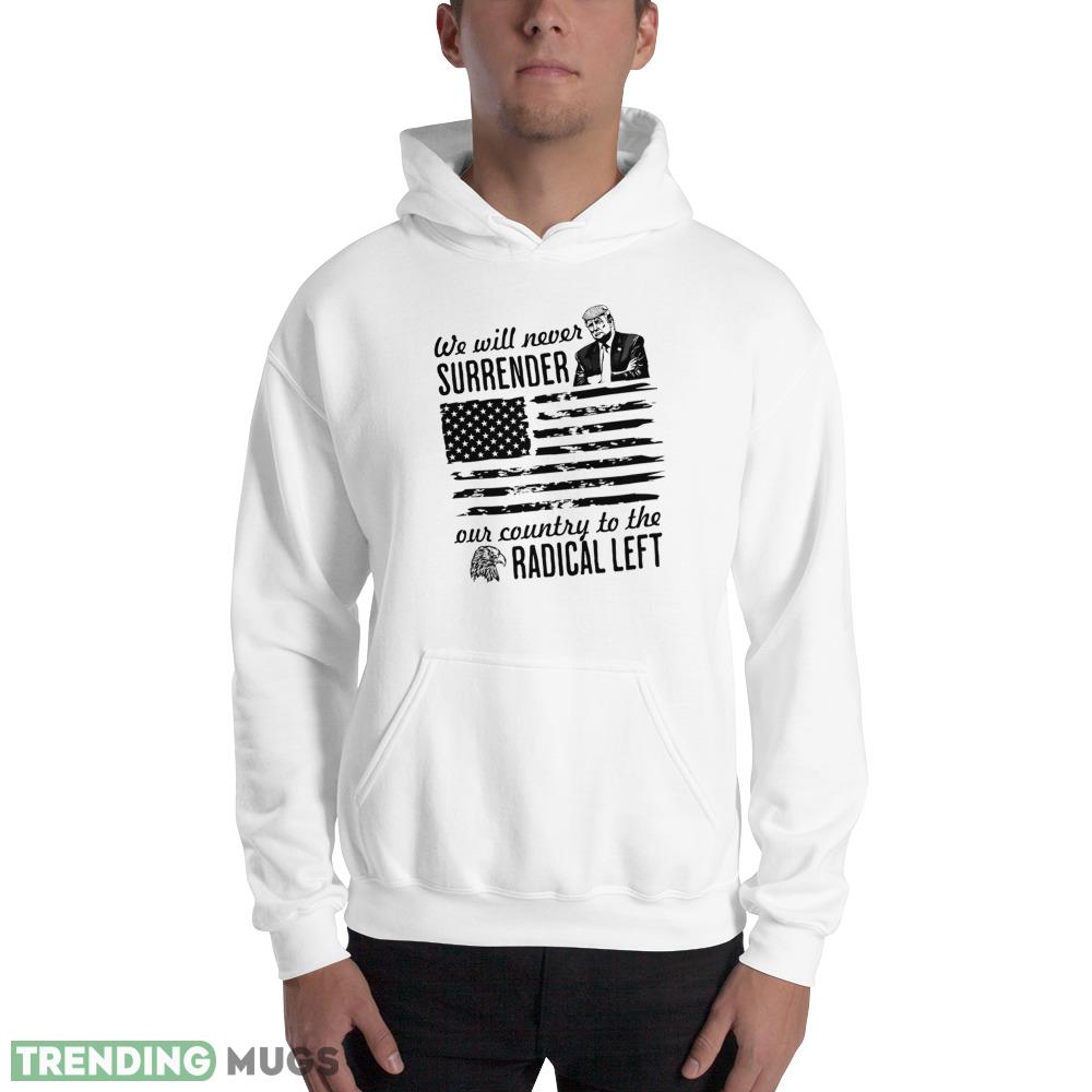Show your unwavering support for President Trump and his vision for America with our Trump We Will Never Surrender Our Country to the Radical Left Pro Trump 2024 Shirt. This stylish and comfortable tee features a bold graphic that proudly declares your stance against the radical left and your commitment to the conservative movement. Made from premium materials, this shirt is durable and long-lasting, ensuring that you can wear it for years to come. Perfect for rallies, events, or everyday wear, this shirt is a must-have for any Trump supporter. So, join the movement and show your support for President Trump with our Trump We Will Never Surrender Our Country to the Radical Left Pro Trump 2024 Shirt!