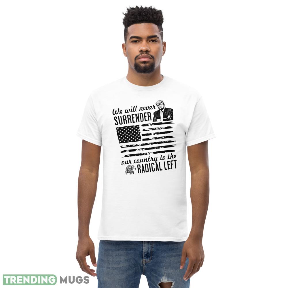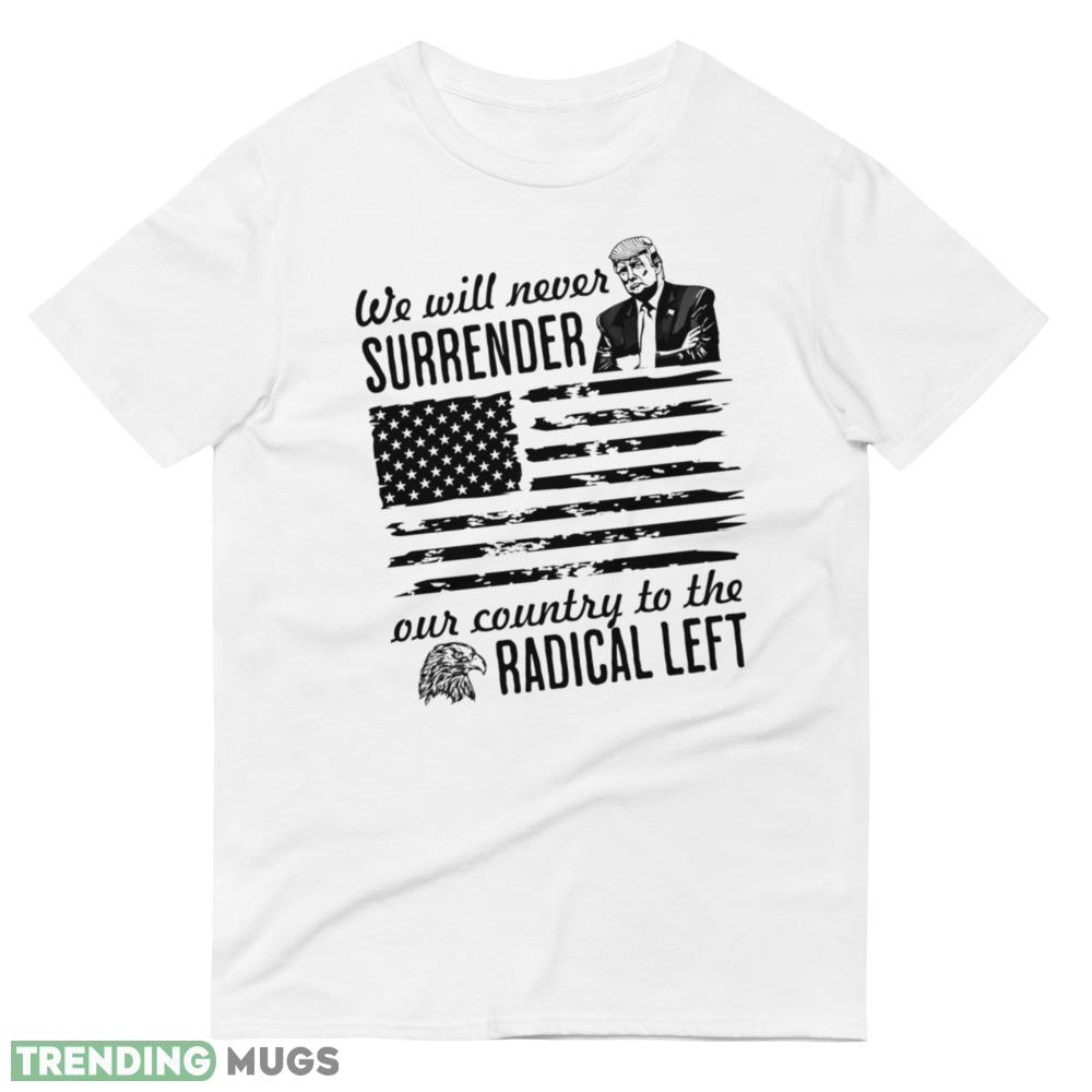 Trump We Will Never Surrender Our Country to the Radical Left Pro Trump 2024 Shirt Details
