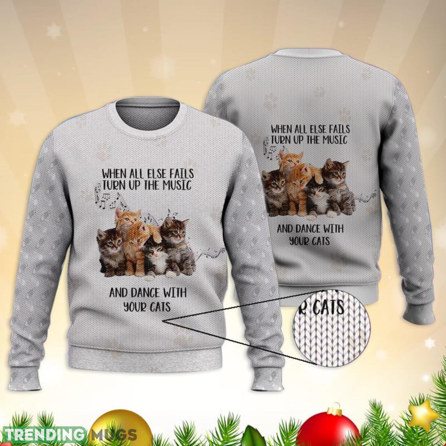 Turn Up The Music And Dance With Your Cats 3D Full Print Ugly Sweater Christmas Gift Sweater Informations: