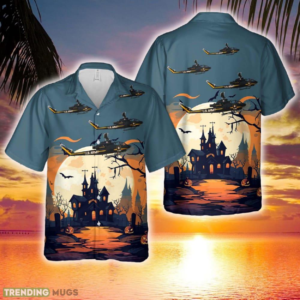 U.S. Army AH-1F Cobra Attack Sky Soldiers Aerial Display Team Team Combat Aircraft Halloween Hawaiian Shirt Details: