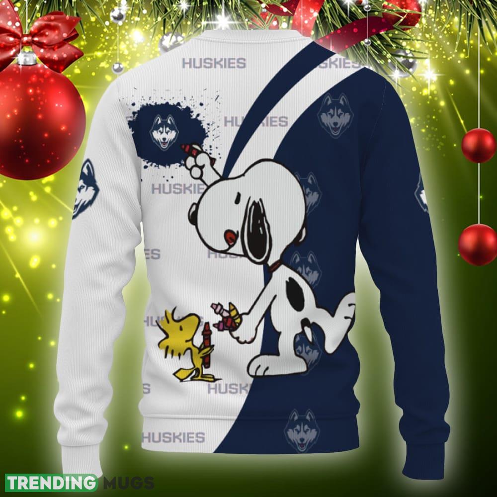 Crafted with the utmost care and attention to detail, this sweater features a unique design that combines the iconic UConn Huskies logo with a heartwarming Snoopy print. The vibrant colors and intricate stitching make this sweater a true standout, ensuring you’ll be the center of attention at any holiday gathering.
