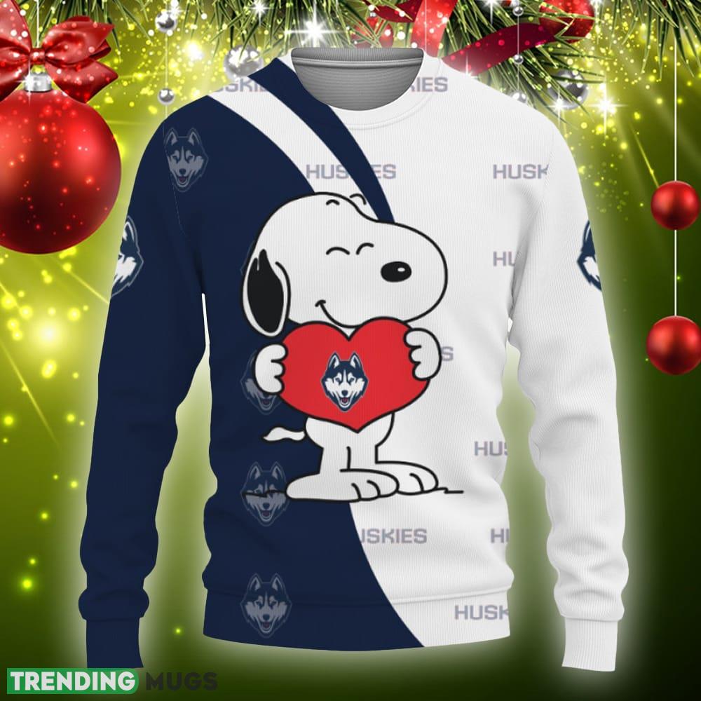 UConn Huskies Snoopy Cute Heart American Sports Team Ugly Christmas Sweater Gift Holidays – UConn Huskies Snoopy Cute Heart American Sports Team Sweatshirt-3D Sweatshirt_3
