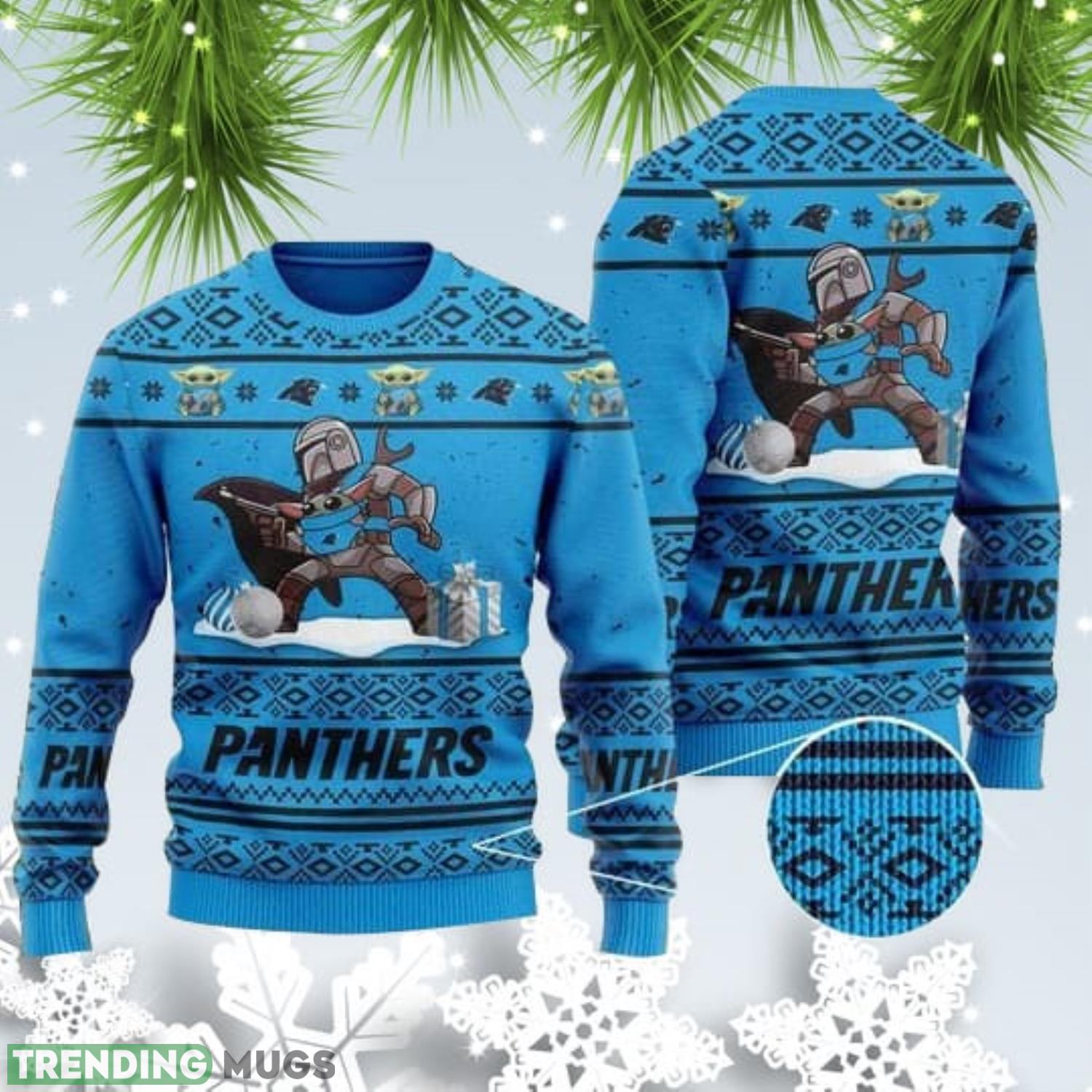Ugly Baby Yoda Boba Fett The Mandalorian Carolina Panthers For Christmas Ugly Sweater Product Photo 1