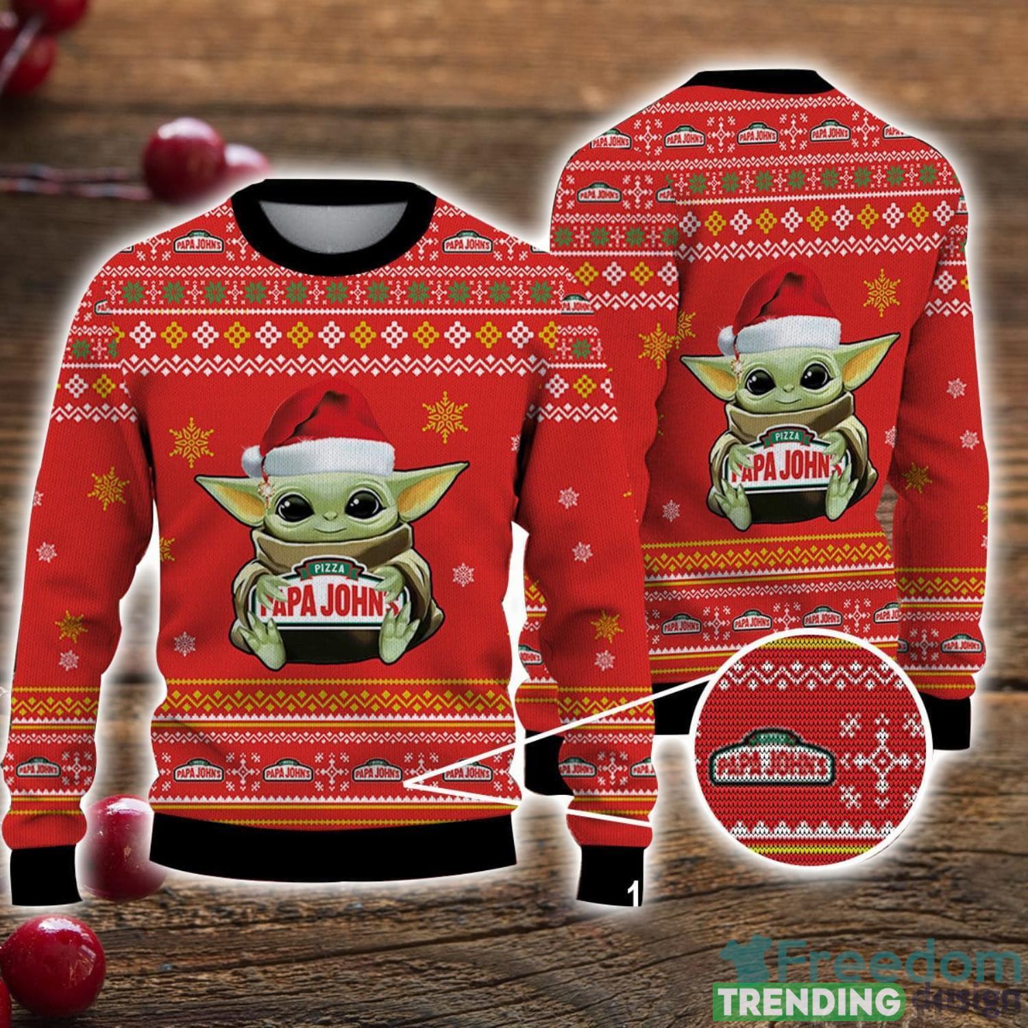 Ugly Sweater Papa John’s Pizza Baby Yoda Christmas Gift 3D Sweater Men And Women Sweater Product Photo 1
