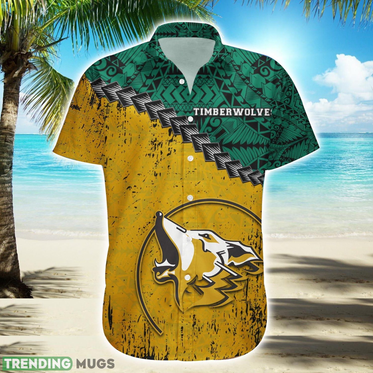 Unbc Timberwolves Ca Cis Grunge Polynesian Tattoo Pattern Hawaiian Shirt For Fans Details: