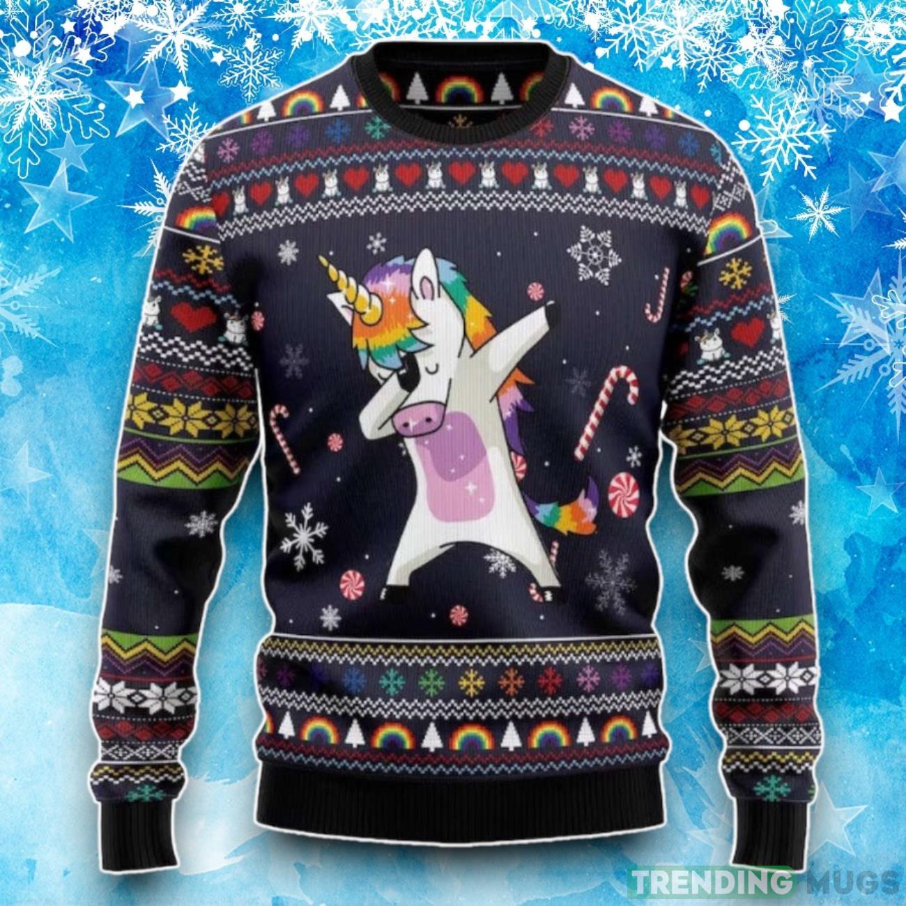 Crafted with utmost care and attention to detail, this sweater features a vibrant and eye-catching design that combines the mythical charm of unicorns with the trendy dance move that took the world by storm – the dab! The result? A truly unique and captivating piece that will make you the star of any holiday gathering.