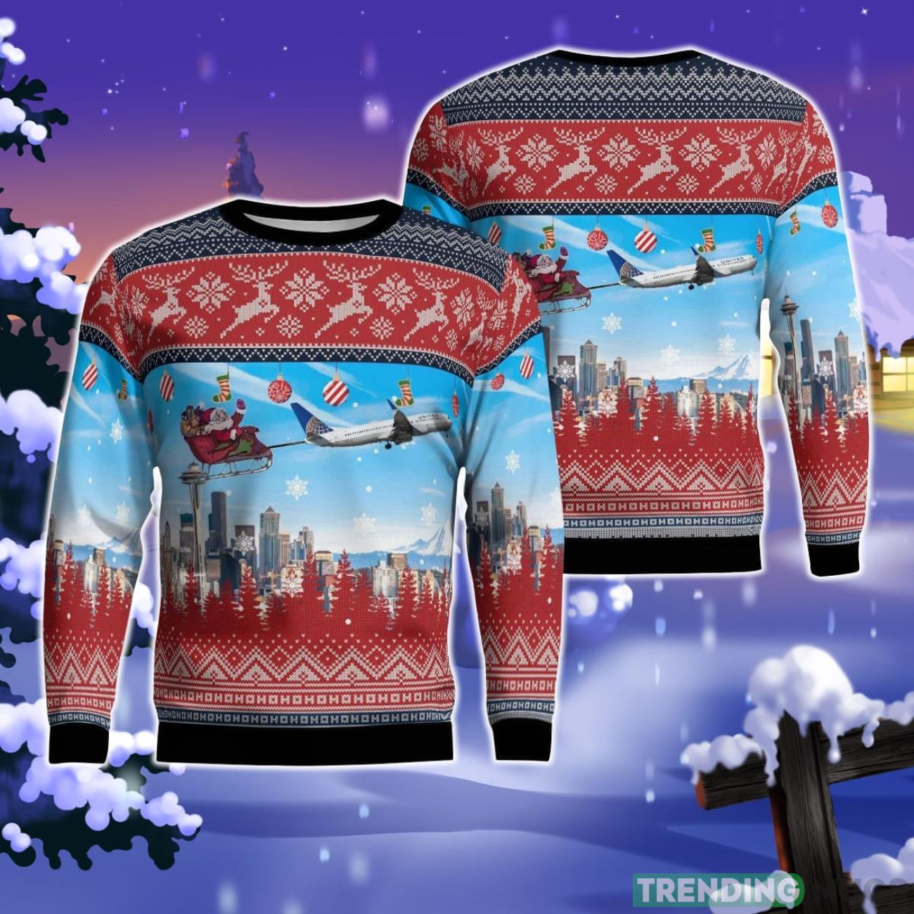 With its unique combination of aviation and Christmas elements, the United Airlines Boeing 737-824 With Santa Over Seattle Christmas Ugly Sweater is a must-have for aviation enthusiasts, Seattle fans, and anyone who loves to embrace the holiday season in style.