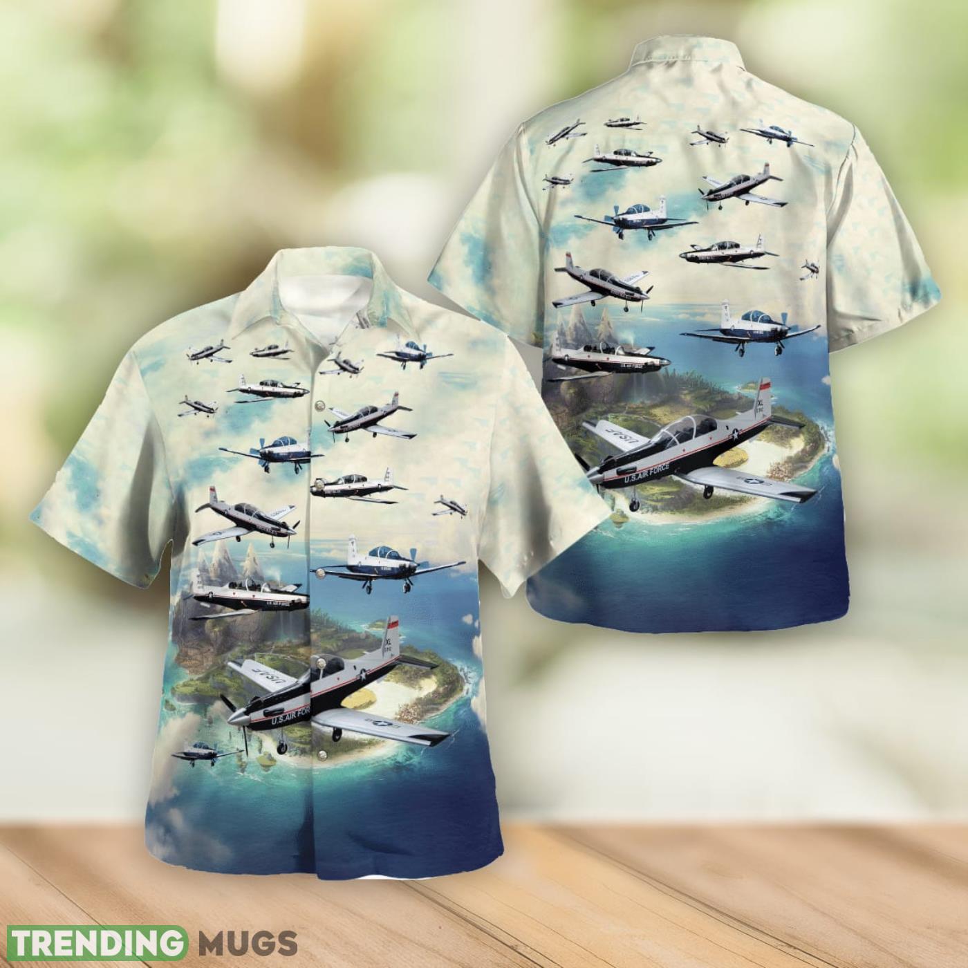 US Air Force Beechcraft T-6 Texan II Button Up Hawaiian Shirt Beach Gift Details: