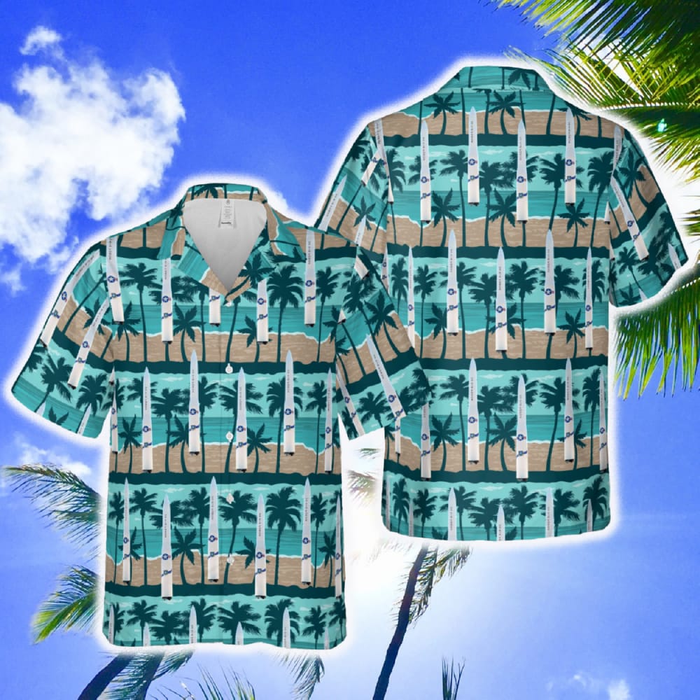 Designed for both men and women, this shirt is perfect for any occasion, whether you’re hitting the beach, going on a tropical vacation, or simply looking to add some flair to your everyday style. The stunning print features the iconic LGM-30 Minuteman Missile, paying tribute to the powerful force of the Air Force.