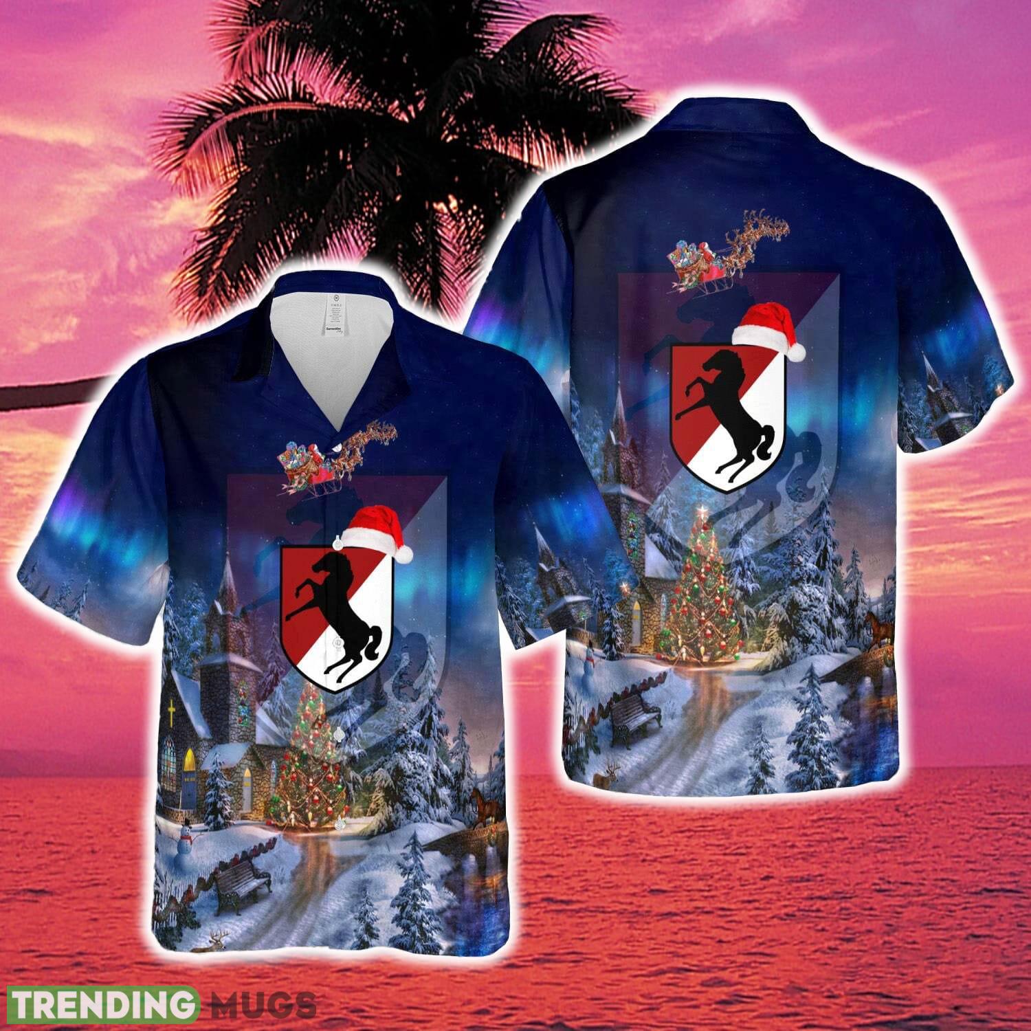 US Army 11th Armored Cavalry Regiment 11th ACR Blackhorse Christmas Hawaiian Shirt Holiday Summer Details: