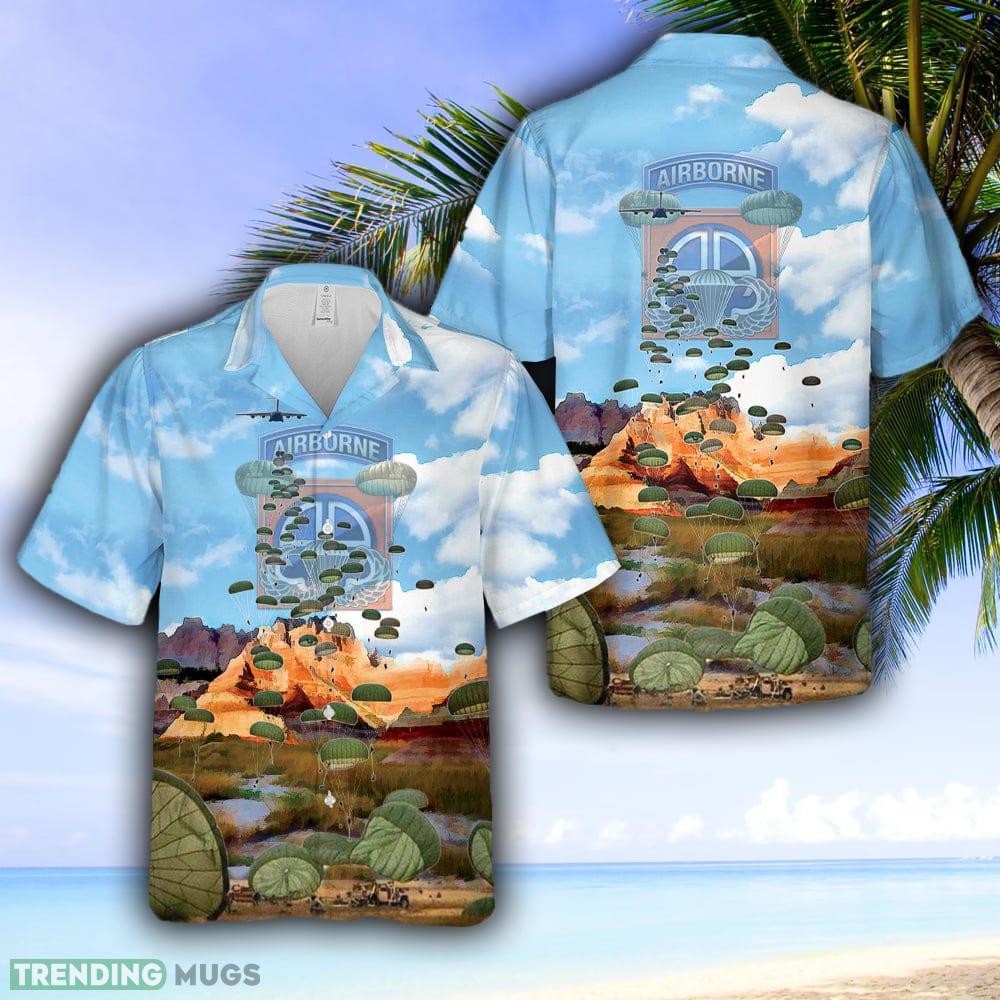 Crafted with meticulous attention to detail, our Hawaiian shirt features a vibrant and eye-catching design that effortlessly captures the spirit of the airborne division. The iconic parachute emblem proudly stands out, subtly reminding everyone of the bravery and courage it represents.