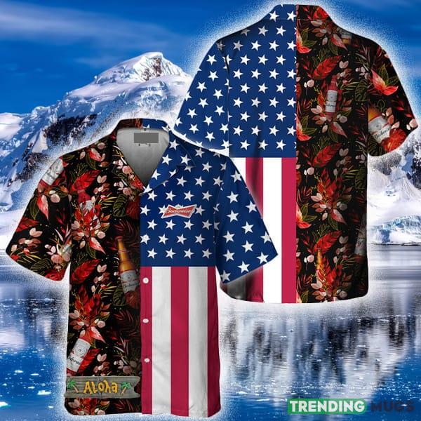 US Flag Budweiser Tropical Flowers Hawaiian Shirt For Men And Women Gift Hawaiian Beer Details: