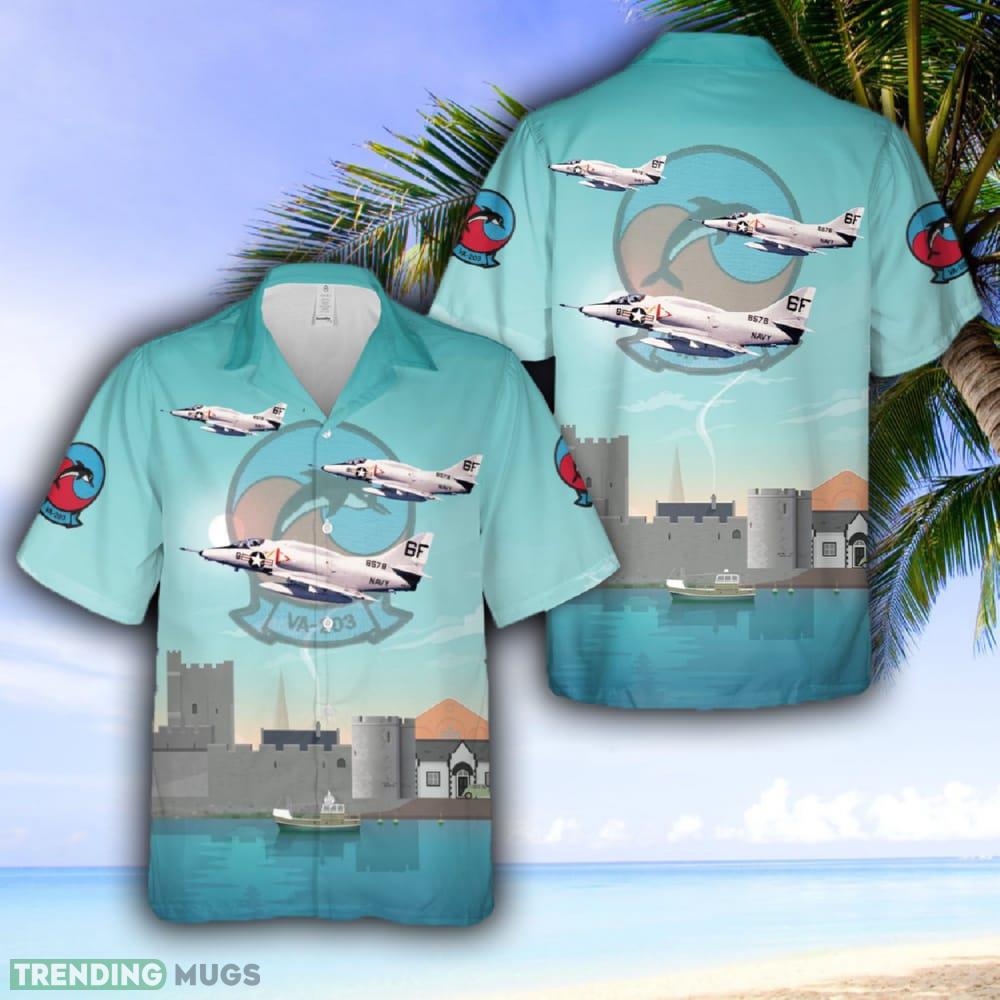 So, why wait? Embrace the spirit of adventure and pay tribute to the brave heroes of the VA-203 squadron. Order your US Navy A-4L Skyhawk Of Attack Squadron 203 (VA-203) Blue Dolphins Hawaiian Shirt today and make a bold statement that showcases your pride in the US Navy!