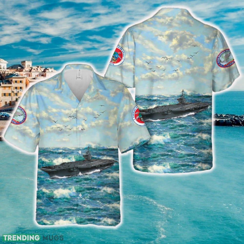 Featuring a vibrant design that beautifully captures the spirit of the high seas, this shirt is a true symbol of naval pride. The striking fusion of the iconic US Navy logos, the powerful USS Ronald Reagan image, and the tropical Hawaiian theme creates an unforgettable visual masterpiece.