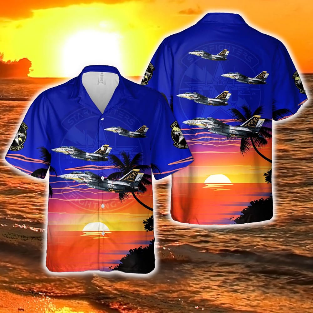Some of the US Navy Grumman F4A 75 GR Tomcat (BuNo 159428) from Fighter Squadron 33 (VF 33) Starfighters Hawaiian Shirt Tropical Summer photos