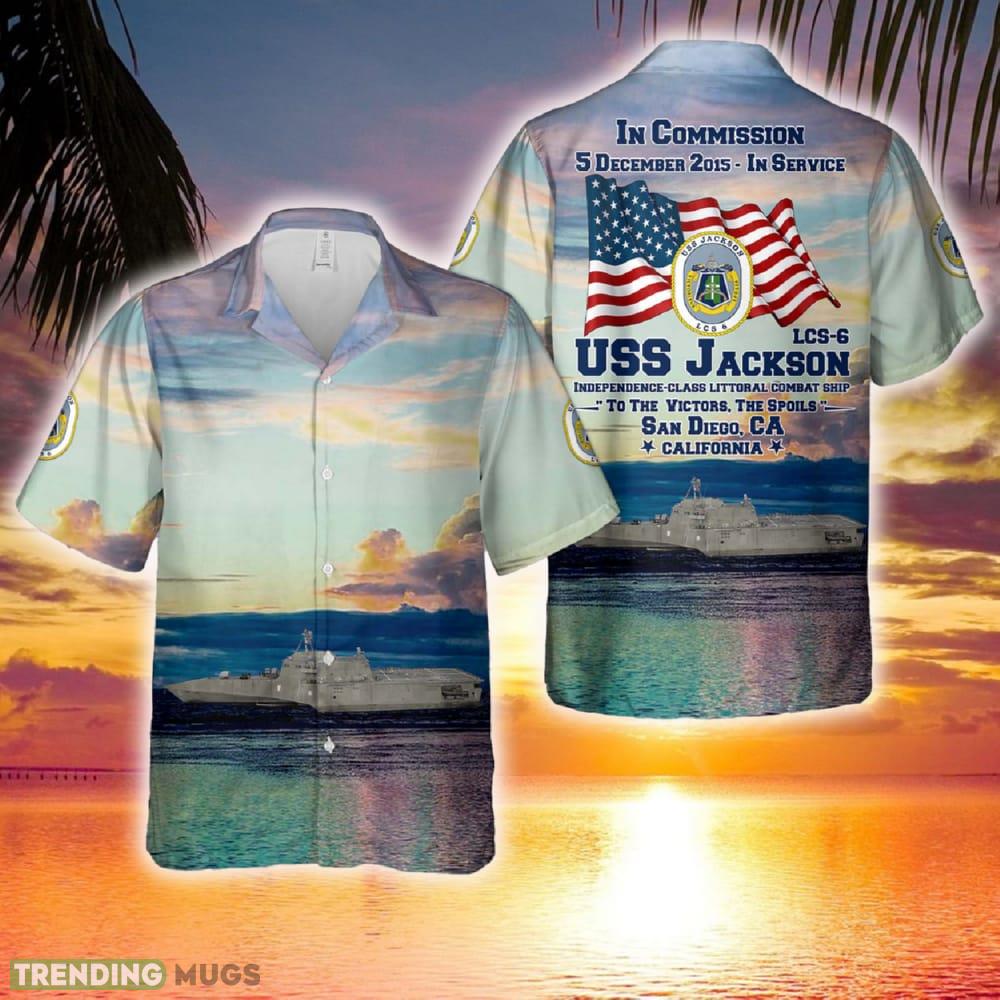 Order your USS Jackson (LCS-6) Independence-class littoral combat ship Hawaiian Shirt today and let your love for the US Navy shine through!